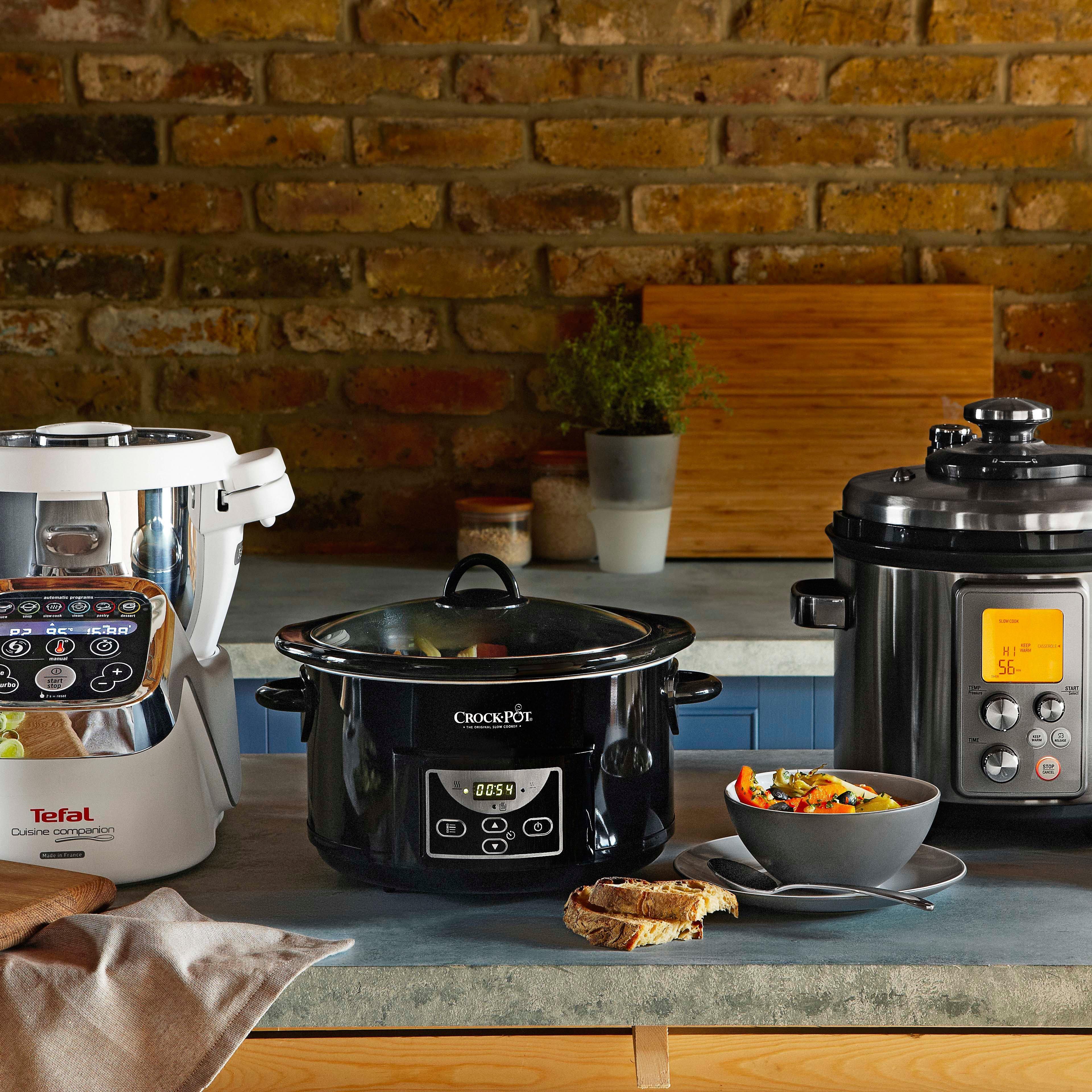 Mealtime at your finger tips! This highly practical and versatile Crock-Pot® SCCPRC507B-060 slow cooker brings modern style to any kitchen with its gloss black exterior finish and easy-to-use one touch button settings.