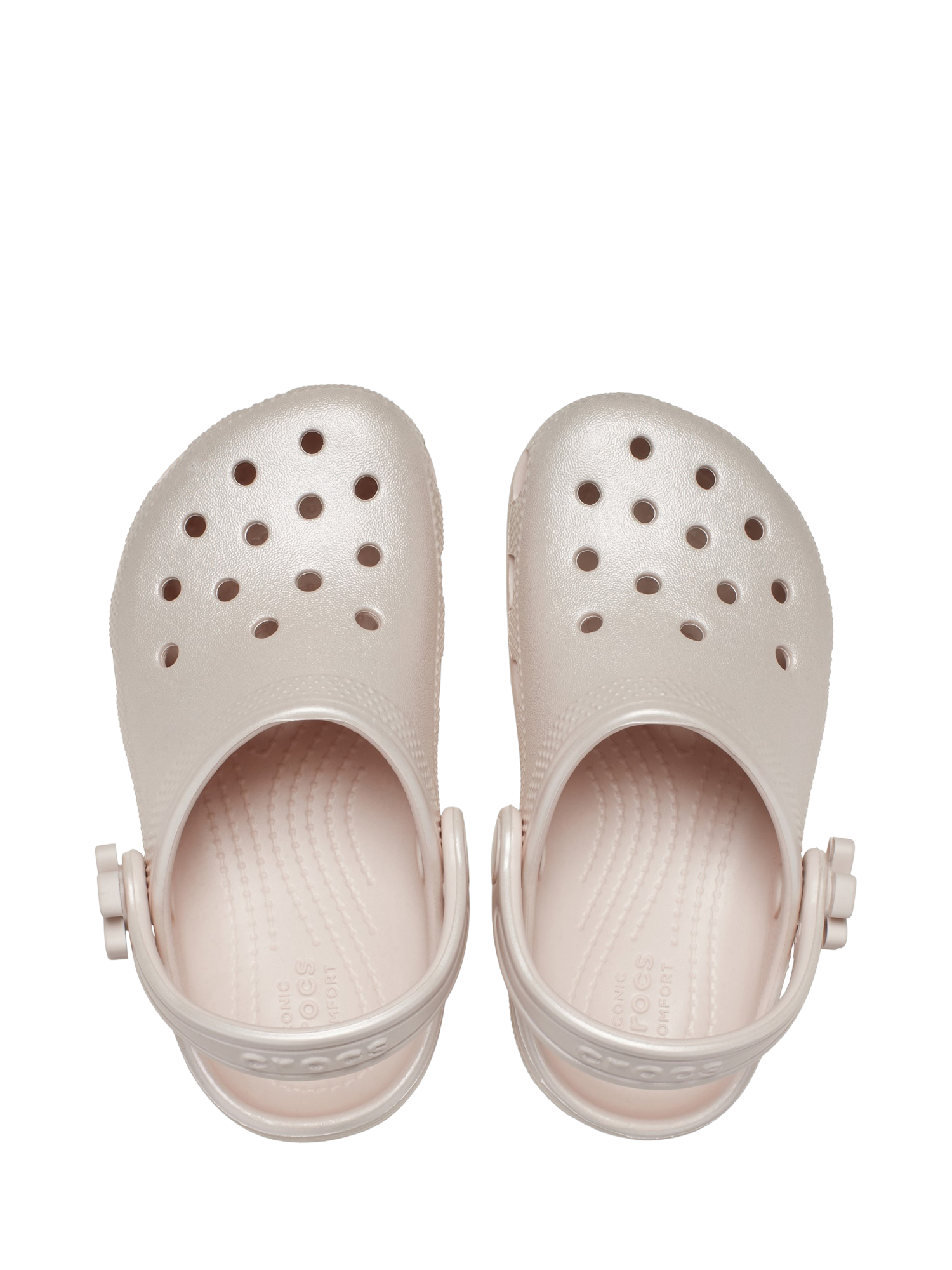 Little ones will love the slick nacreous treatment and iconic Crocs comfort in the Classic Pearl Shine Clog. Grounded in comfort, spiked with personality. Incredibly light and fun to wear, easy to clean and quick to dry.