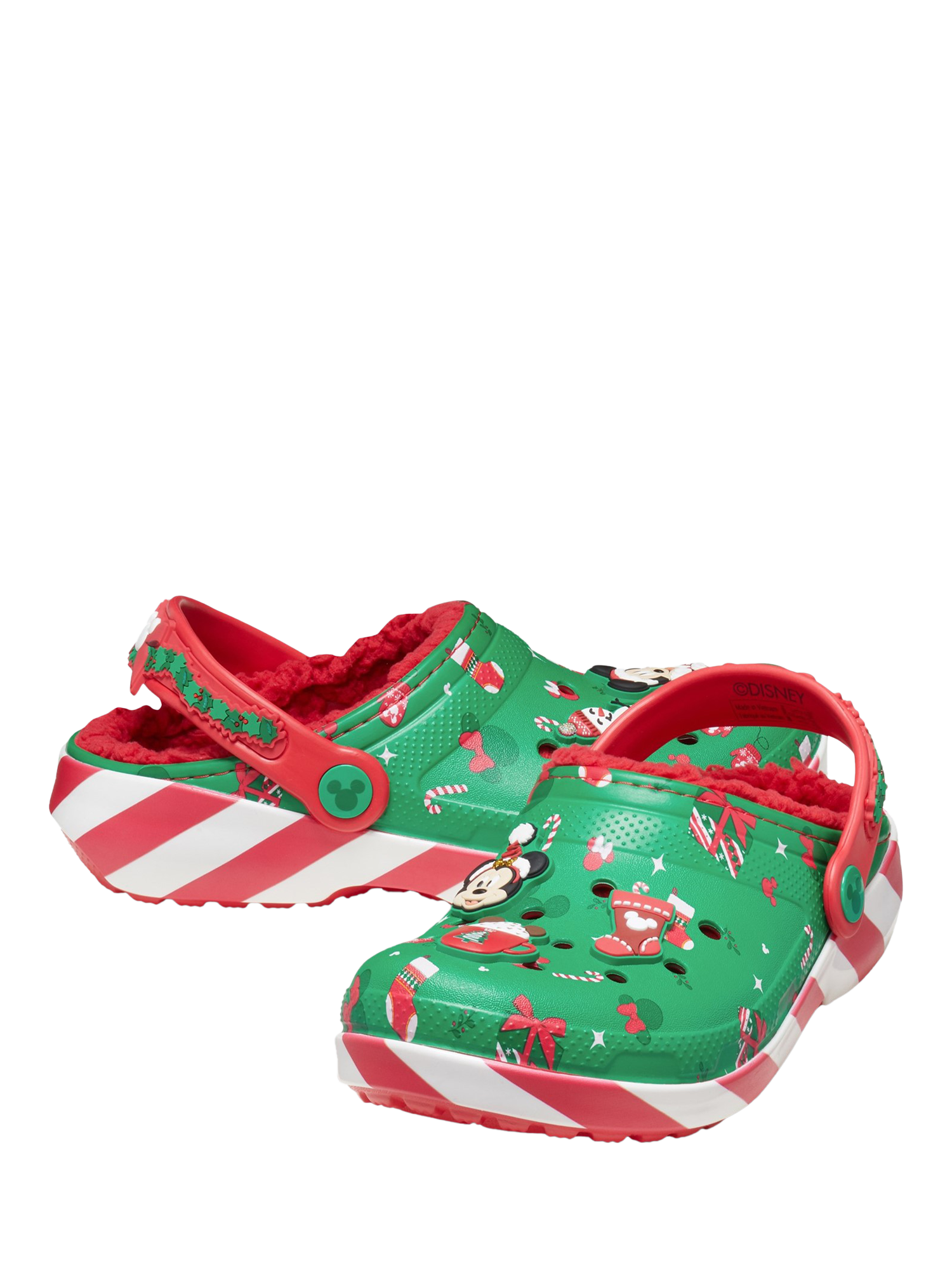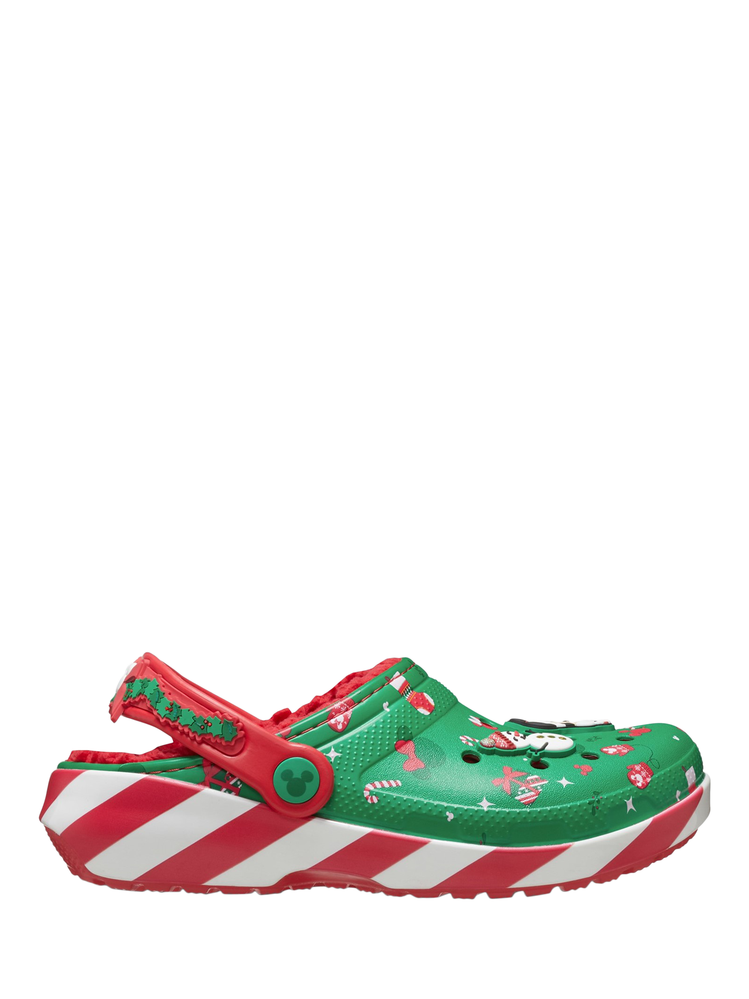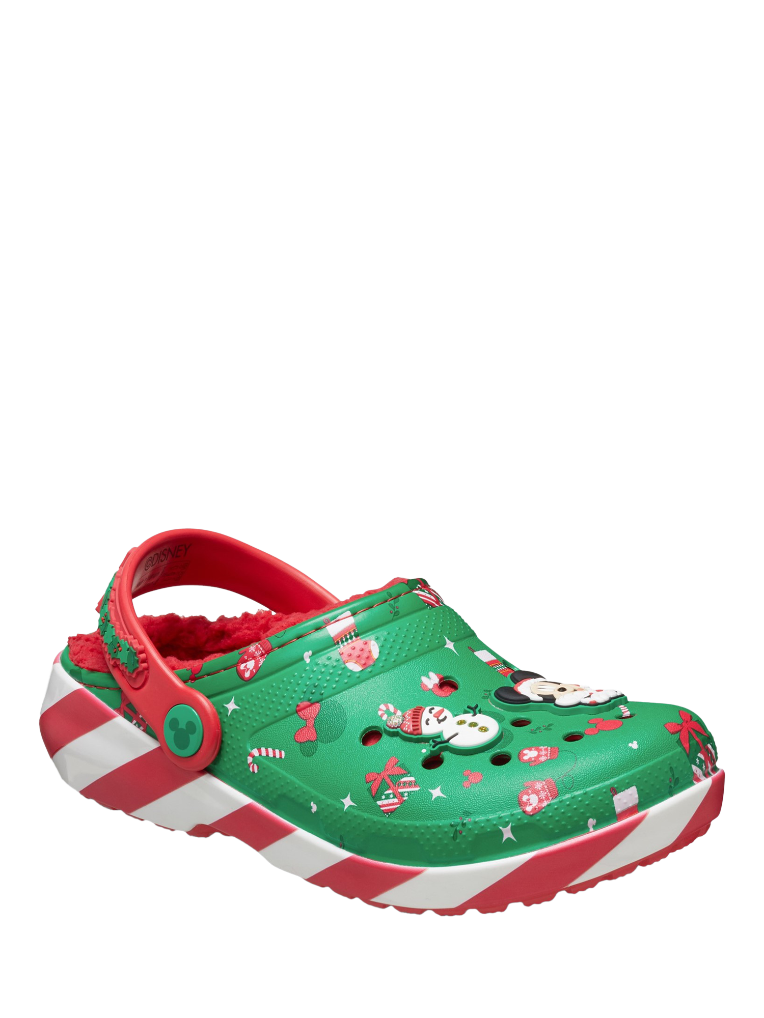 Disney fans can show their love for Mickey and Minnie this Christmas in these festive clogs. Its classic construction keeps them light and easy to wear, while pivoting backstraps give a secure fit for the outdoors and an easy-on option. Includes a soft and fuzzy comfort lining.