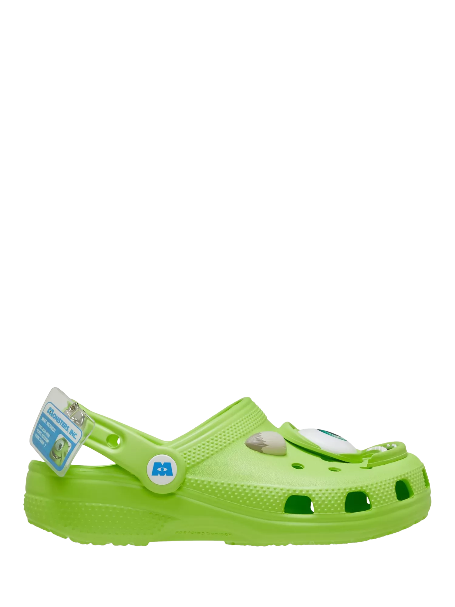 Let your little ones strut their stuff in the Monsters Inc Mike Classic Clog. Easy on, easy off ease means prepping for outdoor playtime or indoor cuddle time is a snap. Kids will be comfortable and ready for happy-go-lucky adventures year-round. Incredibly light and fun to wear. Slip on design for ease of use. Pivoting heel straps for a more secure fit.