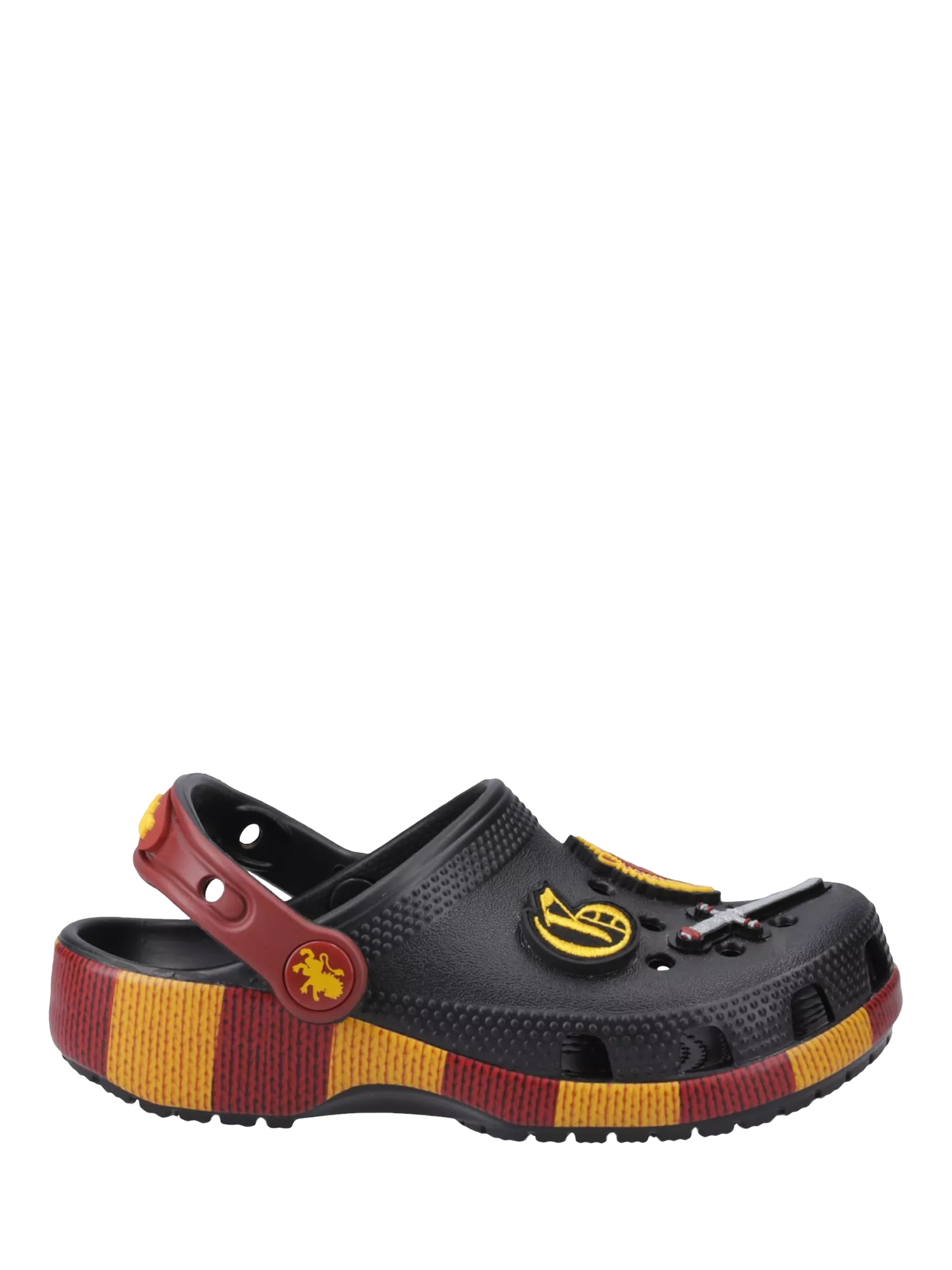 Show off your love for all things witchcraft and wizardry with the Gryffindor Classic Clog. Slip into your favourite clog and enjoy a custom fit, water-friendly design and ventilated forefoot for breathability now with a Harry Potter inspired design. Ventilation ports add breathability and help water and debris drain away. Heel strap offers a secure fit. Iconic Crocs Comfort: Lightweight. Flexible. 360-degree comfort.