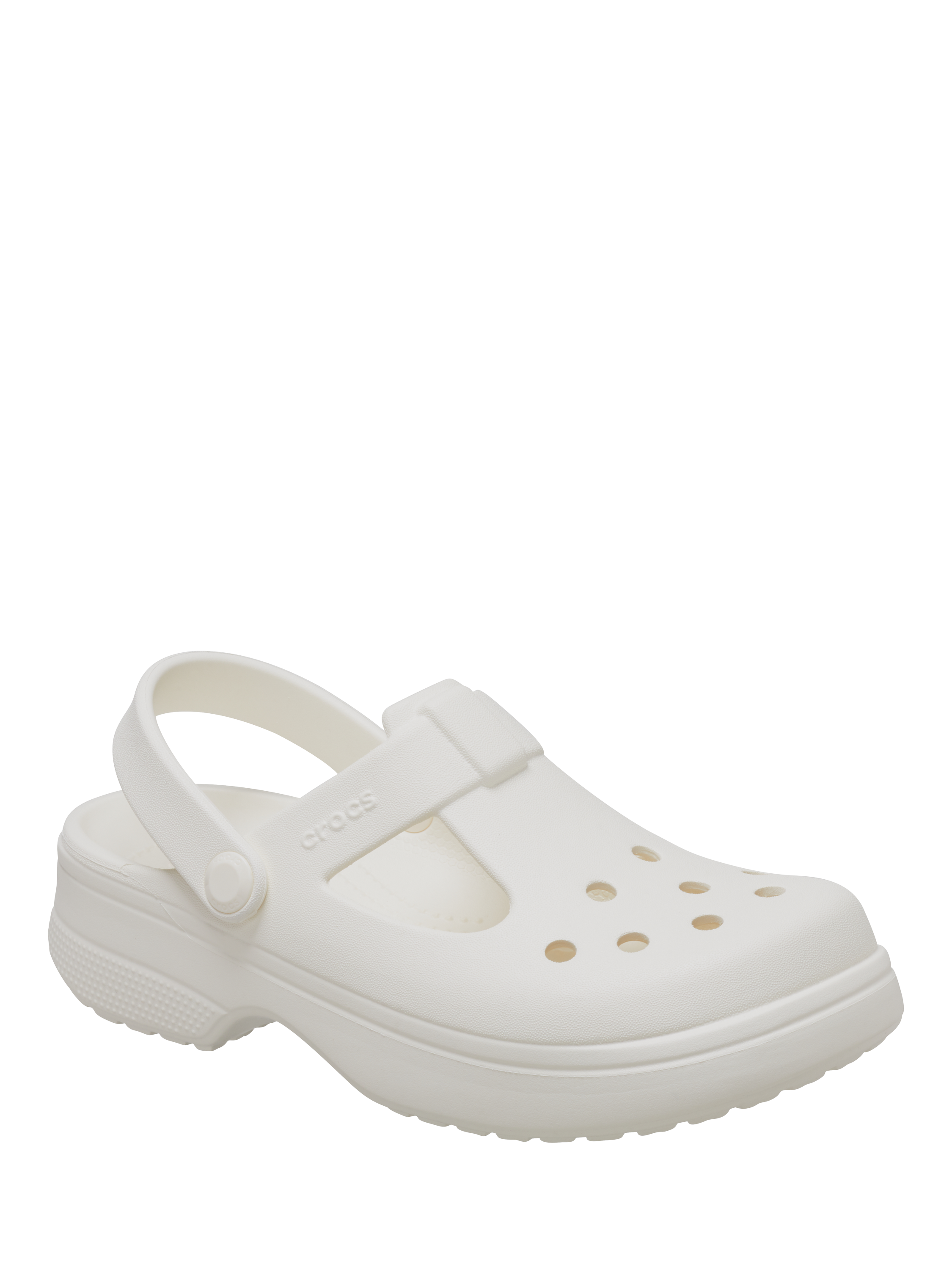 Offering the benefits you love of the Classic clog in Mary Jane styling. A slight platform heel and movable back strap, make them versatile and easy to wear.
