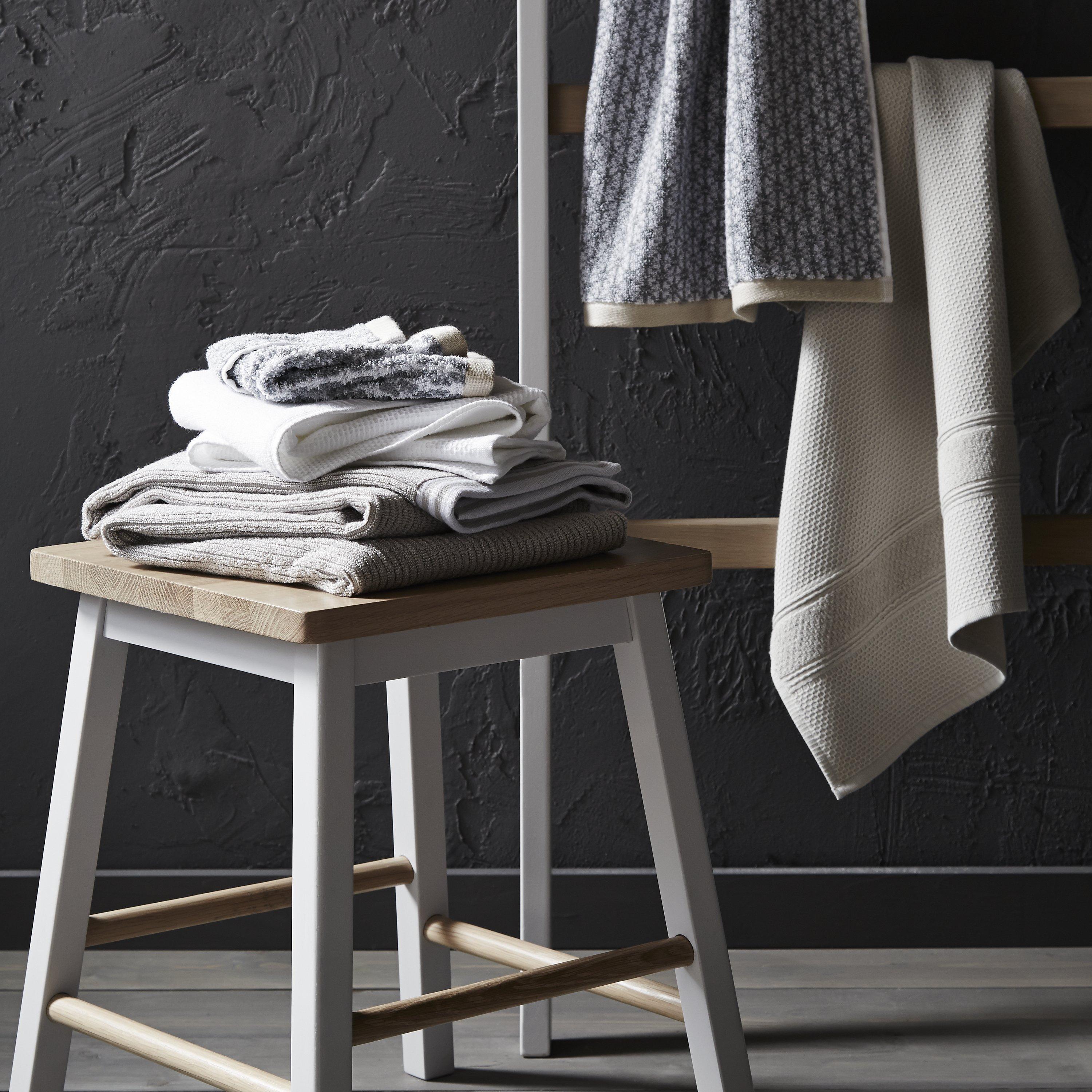 An attractive oak and rubberwood stool that makes a beautiful bathroom accessory. It's finished in contrasting light silver and natural wood.