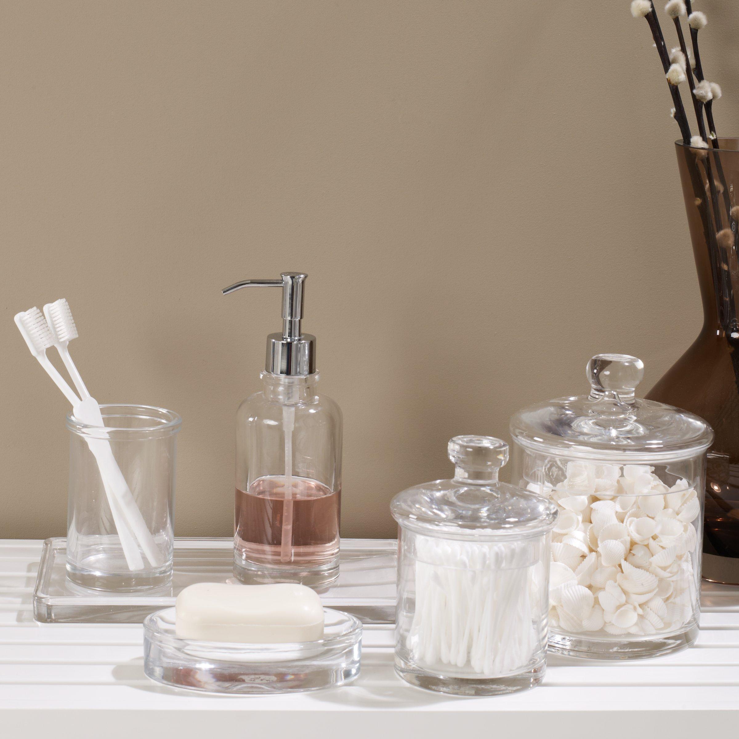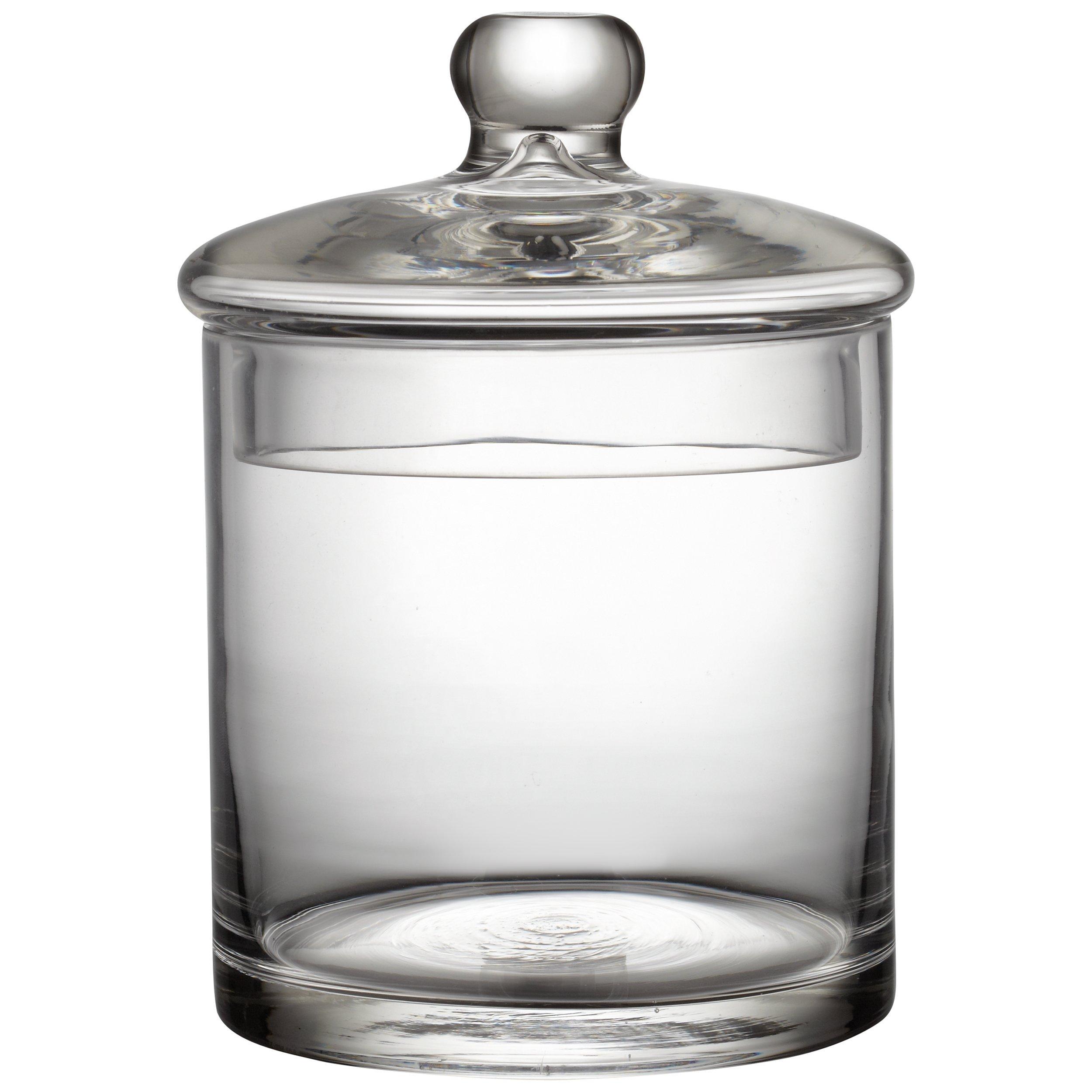 This container is a staple from a simple yet beautiful range of glass bathroom accessories, resembling antique bottles and trinkets. The collection's clean lines, subtle curves and bulbous handles create a feeling of minimalist elegance.