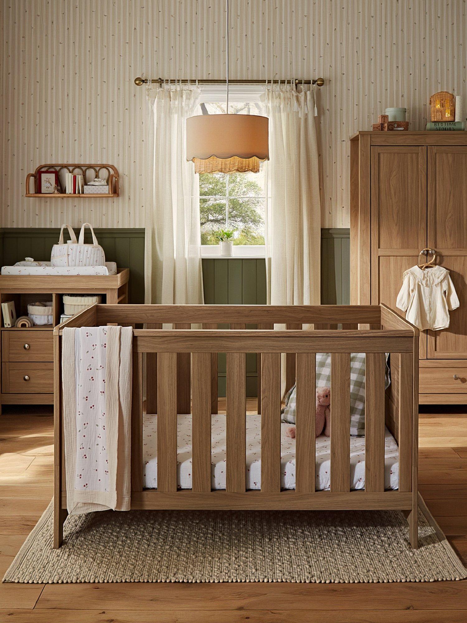 CuddleCoBurford Cot Bed, Changing Table Dresser & Double Wardrobe, Oak