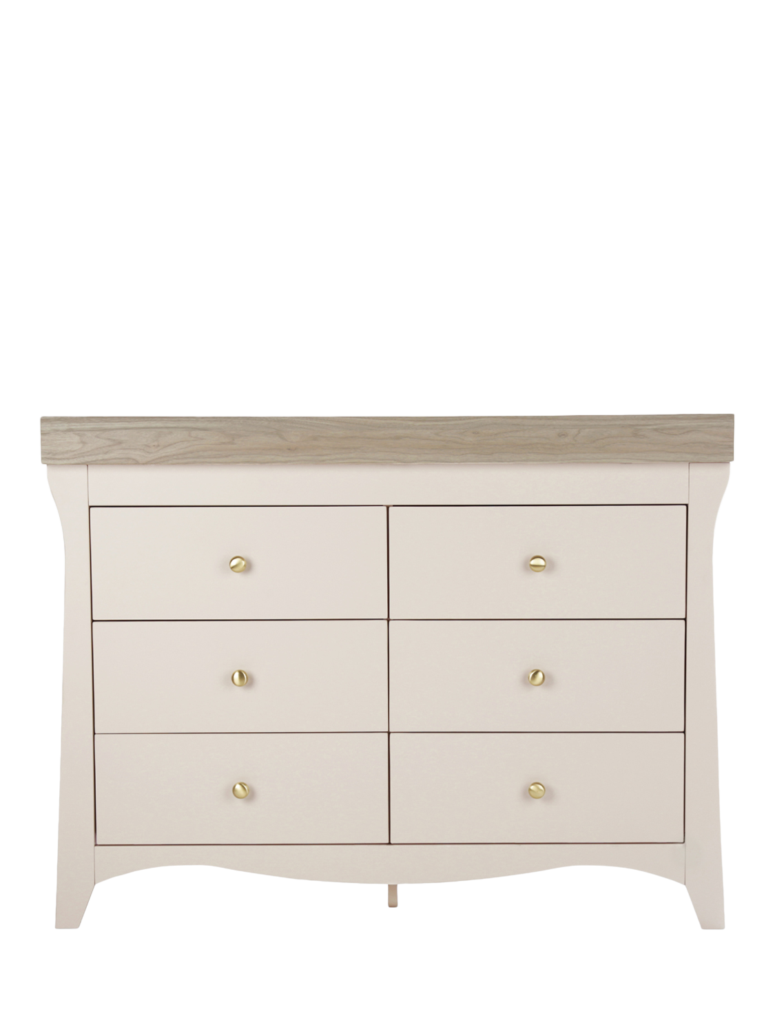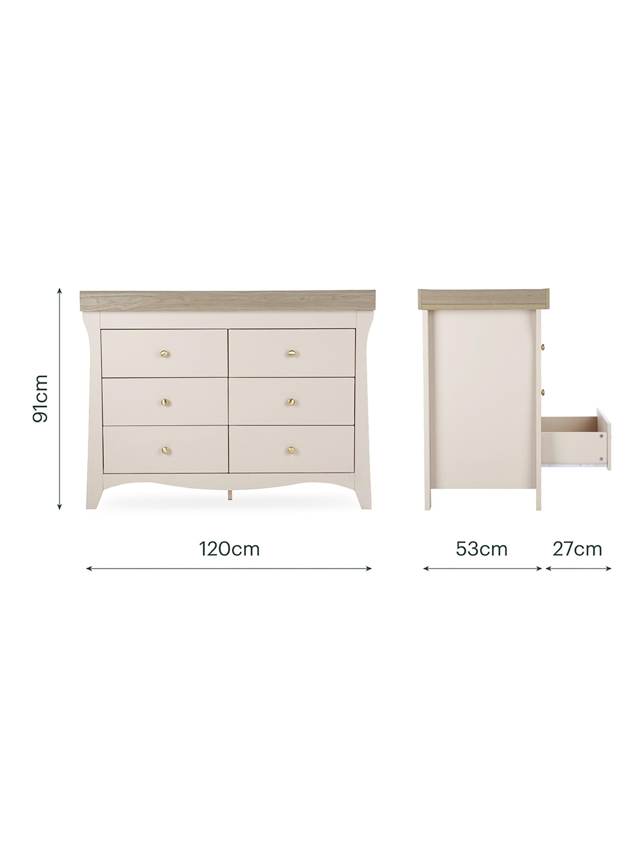 Finished in soft white with warm ash detailing, the Clara 6 Drawer Dresser Changer has a traditional, heritage-inspired design and offers a practical, versatile storage solution for the nursery. Six generously sized drawers with smooth-glide runners provide ample space for nappies, clothing and everyday essentials, while the removable changing top creates a secure changing area in the early months. Once no longer needed, the unit transitions into a standalone dresser designed to remain useful well beyond the baby stage.