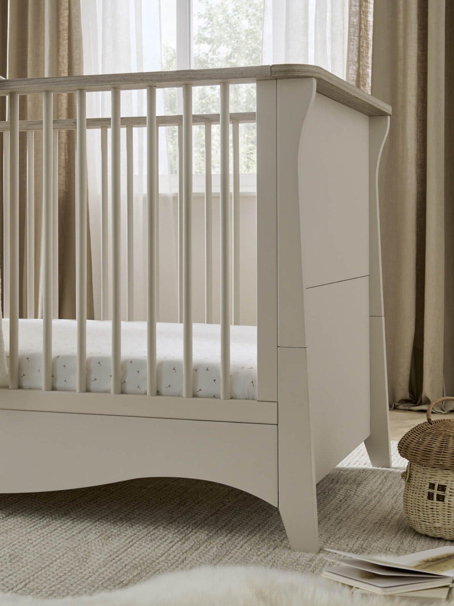 The Clara Cotbed would make a beautiful addition to any nursery. With a timeless silhouette featuring subtle curves and a contemporary cashmere finish, this convertible cotbed has a gender-neutral style that’s easy to refresh as your family grows.
