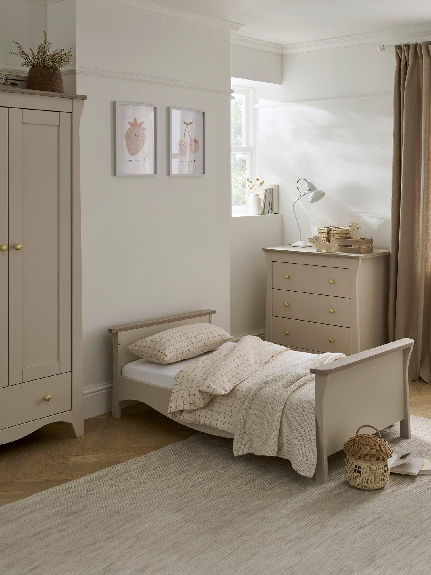 Suitable from birth, the Clara Cotbed adapts to suit you and your baby’s needs. With 3 mattress base positions that can be lowered as your little one learns to sit and stand. The highest mattress position makes it easy to place your newborn down without disturbing them. Once your child is ready you can convert the cotbed to a toddler bed.