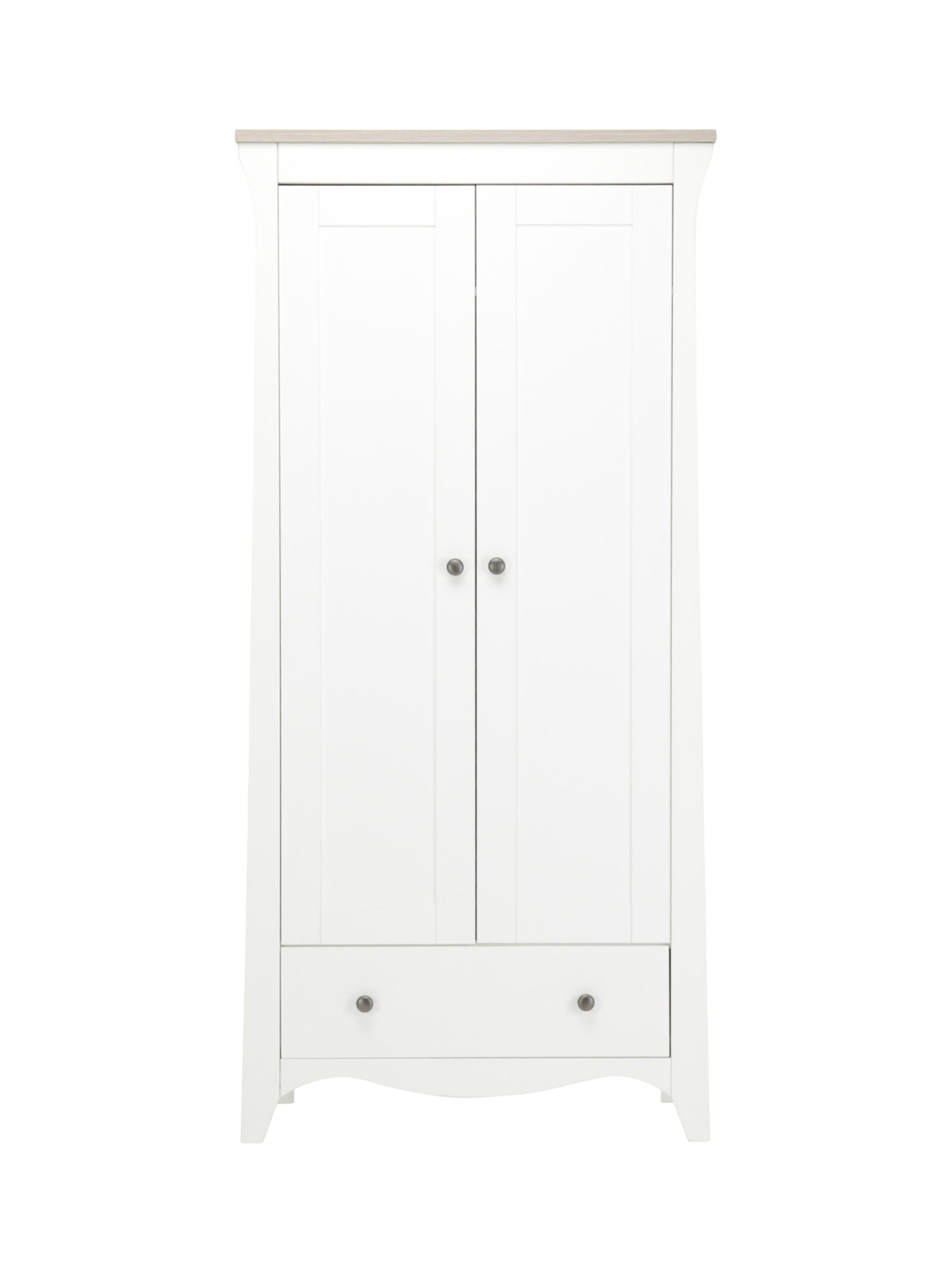 The Clara 2-Door Double Wardrobe is designed to help you successfully organise your nursery. Featuring two removable hanging rails to convert into a full-size wardrobe, a deep storage drawer and a handy shelving space, its classic styling will transform a modern nursery.