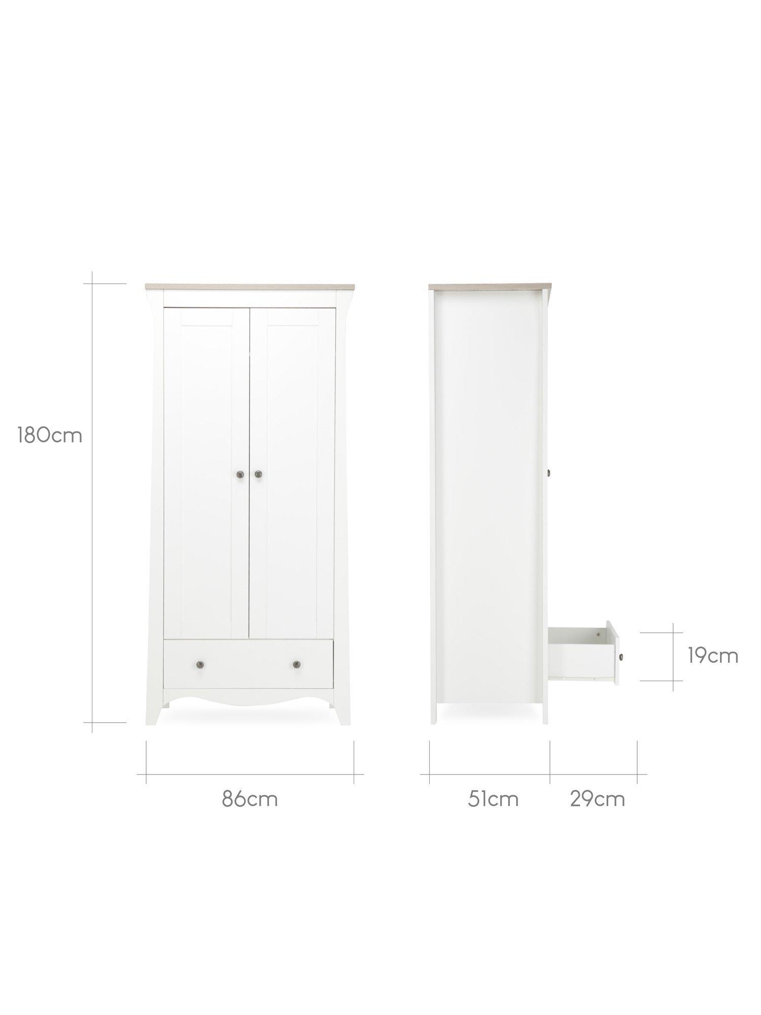 The timeless wardrobe will suit any nursery. However, for a complete look in your dream nursery, combine with other pieces from the Clara Nursery Furniture range.