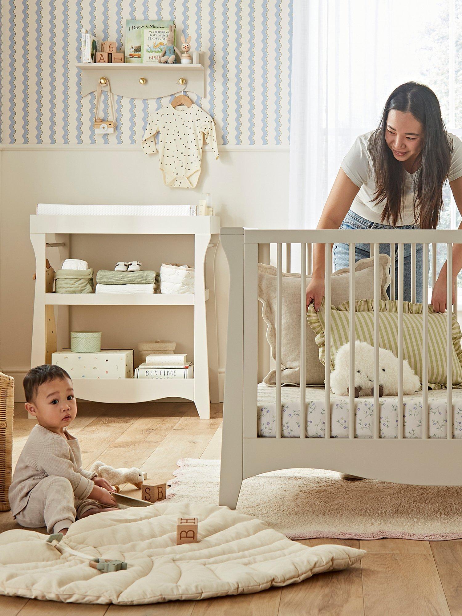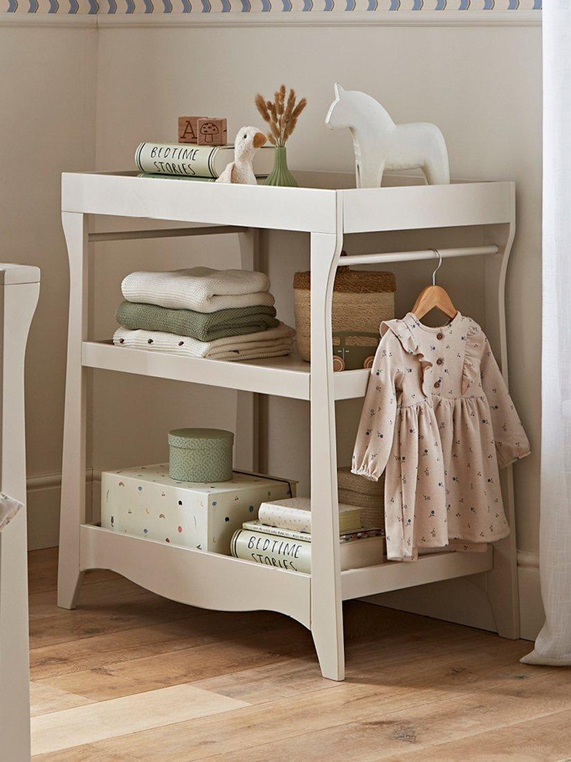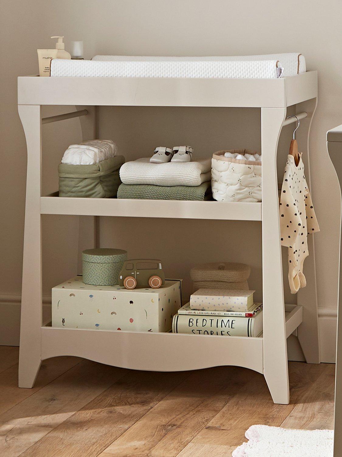 Complete your nursery design with the CuddleCo Clara 2-piece nursery furniture set. Coming with a mini cot bed and open changer, this set offers your nursery the sleep and storage essentials you need in a stylish, gender-neutral cashmere colour.