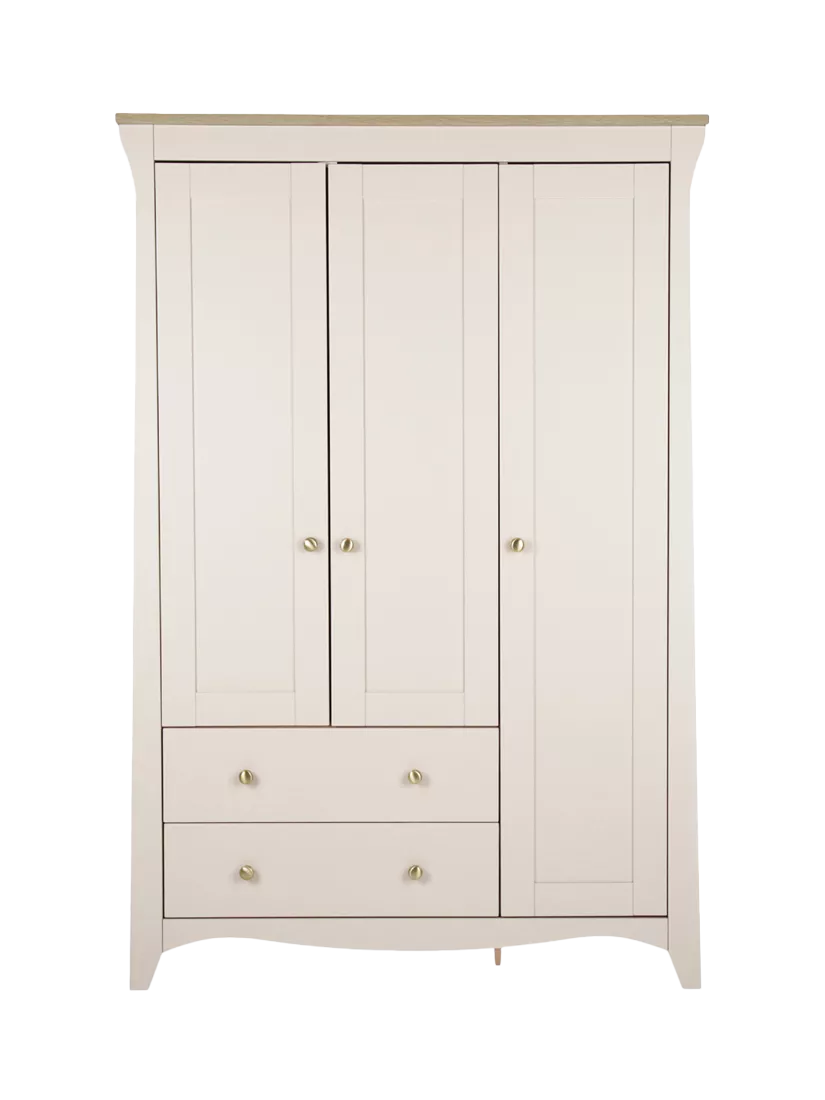 Finished in soft cashmere with ash detailing, the period-inspired Clara Triple Wardrobe provides adaptable storage for clothing, bedding and everyday essentials. A combination of hanging rails and deep shelving makes it easy to stay organised, while the timeless design ensures it transitions seamlessly beyond the nursery years.