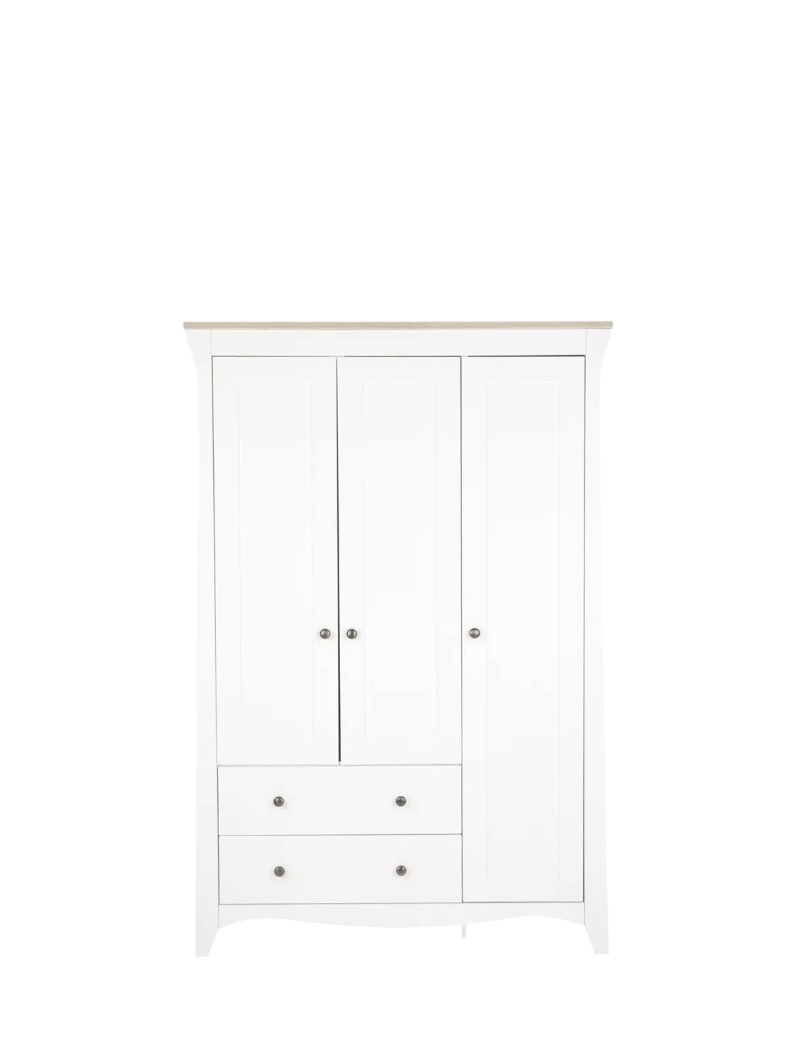 Finished in soft cashmere with ash detailing, the Clara Triple Wardrobe provides adaptable storage for clothing, bedding, and everyday essentials. A combination of adjustable hanging rails and deep shelving makes it easy to stay organised, while the traditional, period-inspired design with a refined decorative profile ensures it transitions seamlessly beyond the nursery years.