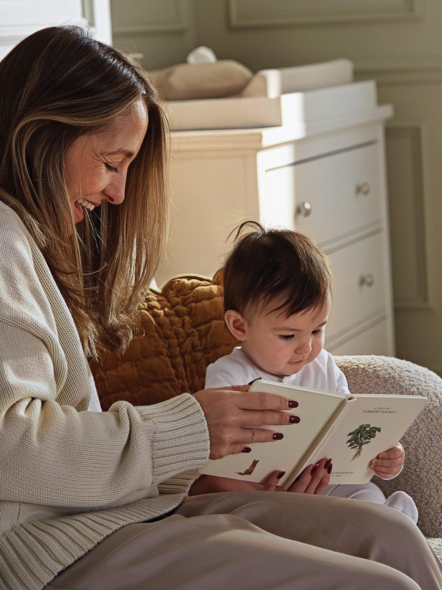 Combining generous proportions with a warm, textured finish, the wider seat of this nursing chair creates a comfortable space for feeding, cuddling and shared moments.