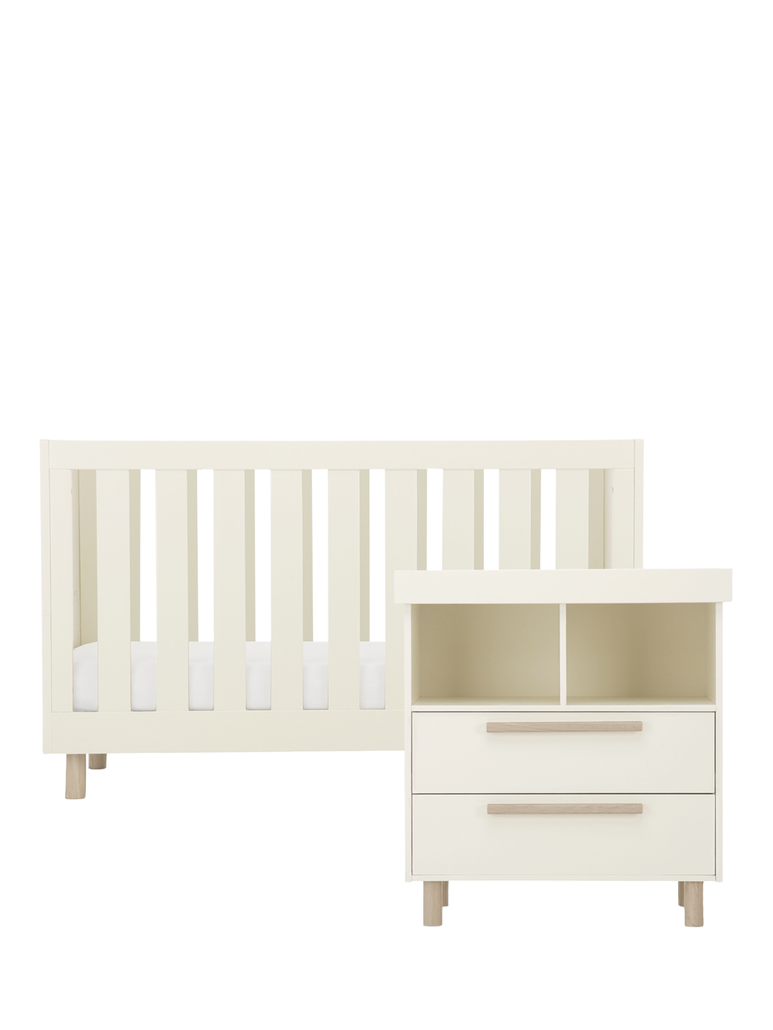 Complete your little one’s nursery with the Harper 2-Piece nursery furniture set, including a convertible baby cotbed and stylish dresser changer. Featuring a contemporary style and neutral colour palette, this set is the perfect addition to any modern nursery that blends gracefully with your contemporary nursery decor.