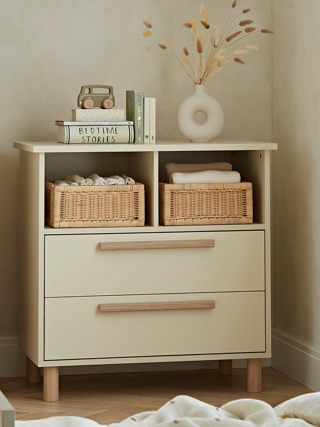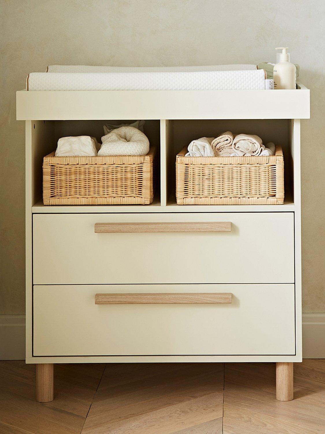 The stylish dresser changer in this set features several storage options for your nappies and changing essentials. The 2 deep drawers and open shelf with a middle divider perfect for storage baskets keeps your changing essentials close by. The top changer can easily be removed when your little one outgrows it to convert the piece into a stylish dresser for your toddler.