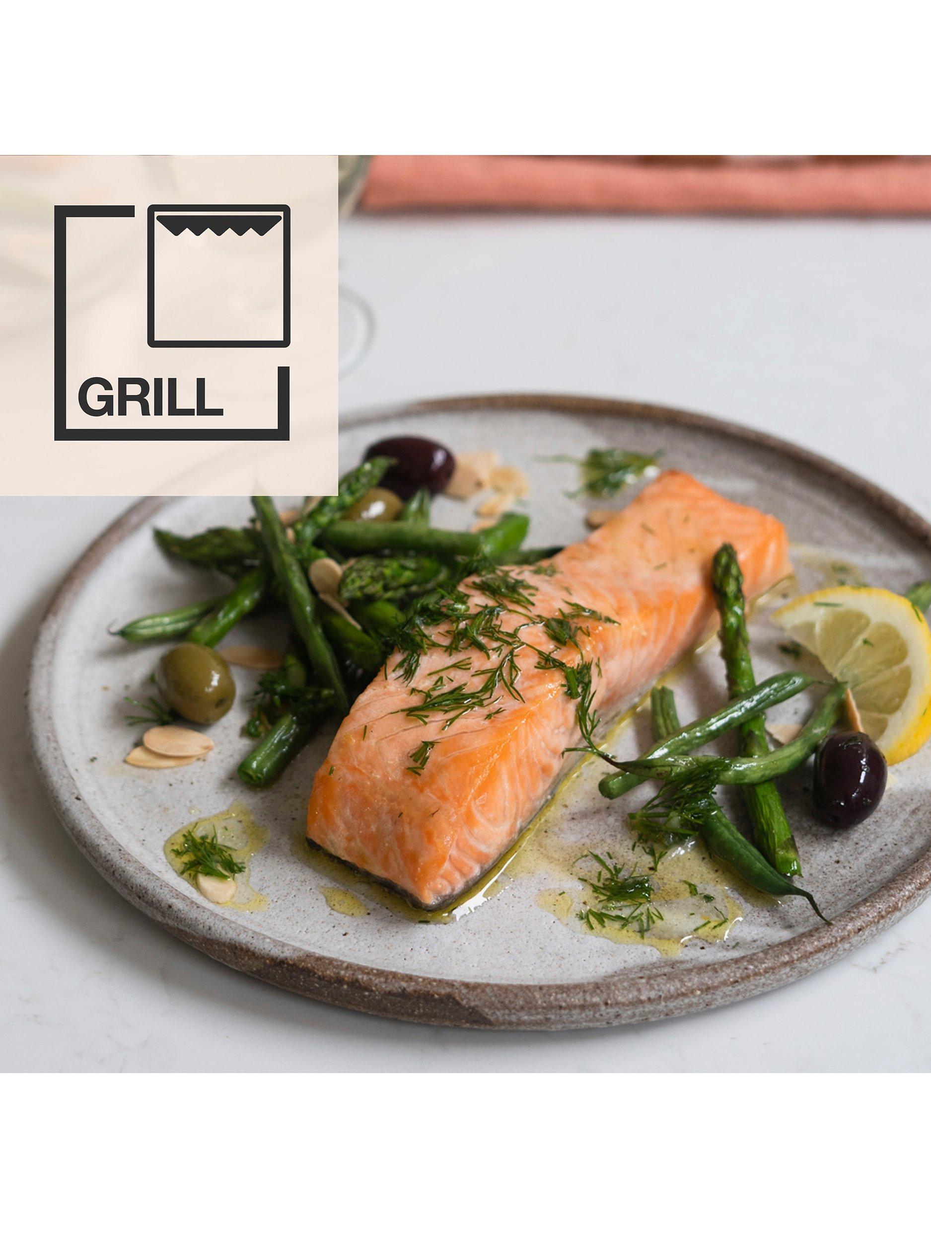 Create delicious pies, cakes and quiches or cook food from frozen, using the bake function. Or use the grill function to grill meat, fish and vegetables, in super quick time, also for healthier cooking.
