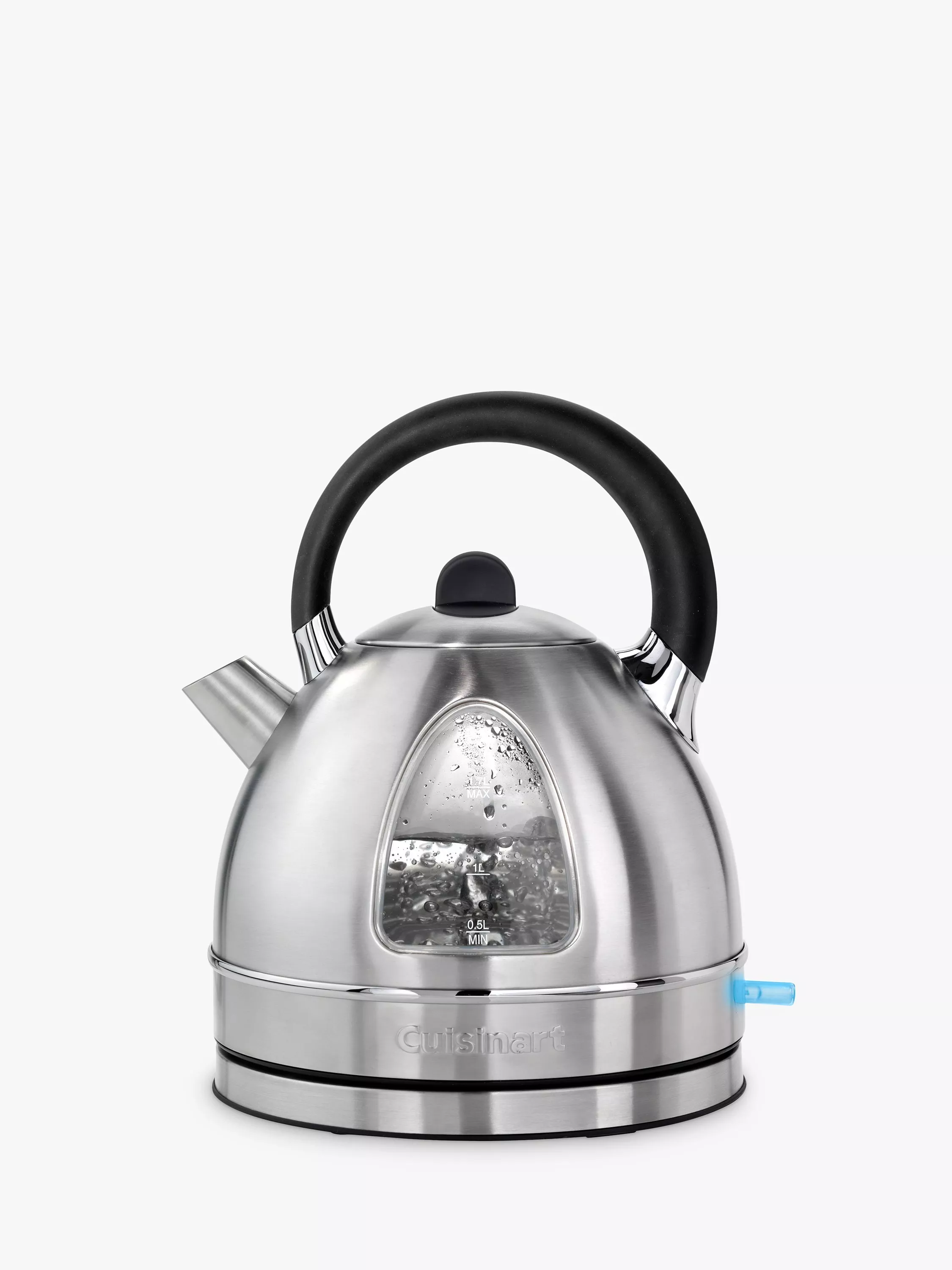 This traditional dome kettle from Cuisinart is a classic and timeless designed kettle for your kitchen. With a large 1.7L capacity, you can supply numerous cups of hot drinks. A powerful 3kW concealed element provides a rapid boil. And with its two large dual water windows, you can fill up quickly. A blue illuminated on/off switch is an attractive finishing touch.