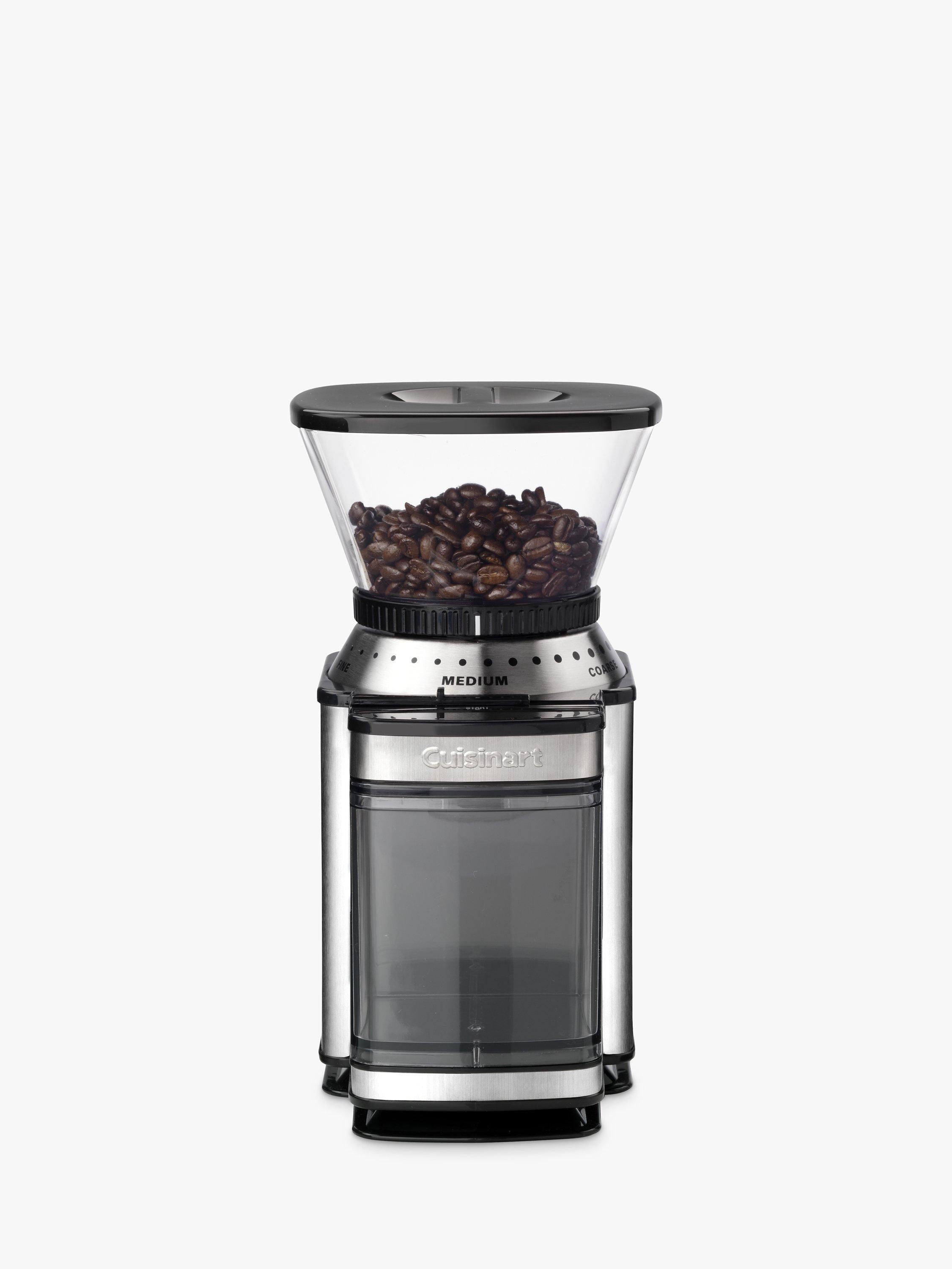 Heavy duty Cuisinart DBM8U burr grinder, which grinds the beans evenly and quietly for a better flavour of coffee. There's a choice of 18 grind positions for whichever type of coffee you prefer, and a 4-18 cup quantity selector. Safety features on the DBM8U includes auto shut-off and a built-in interlock, while the removable parts are dishwasher safe.