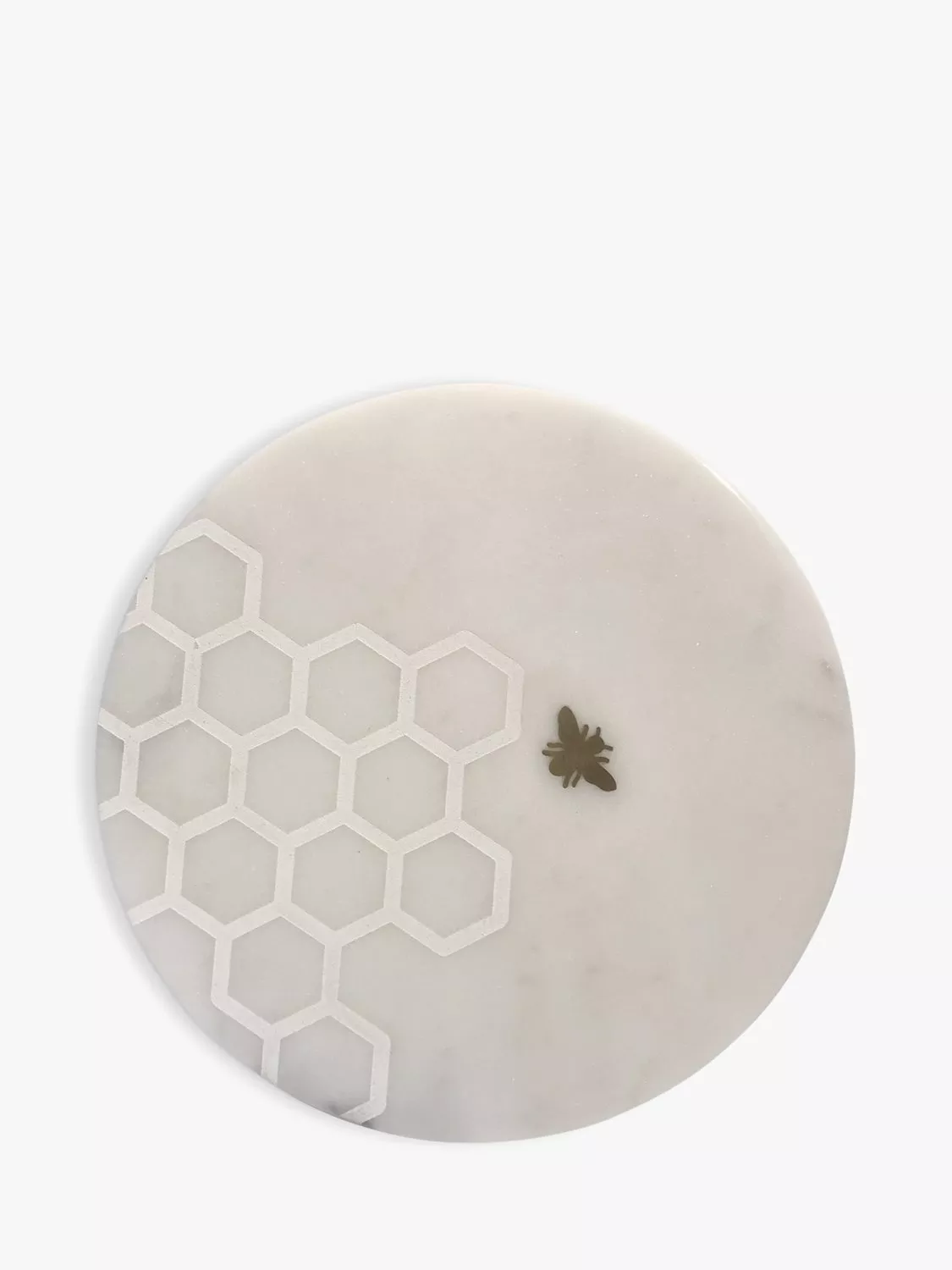 Crafted from high-quality marble, this round board from Culinary Concepts features an inlaid brass bee and contrasting honeycomb design. Durable and decorative, use it for serving cheese, nibbles, appetisers, charcuterie, desserts and more. A thoughtful gift for housewarmings, weddings, anniversaries and other special occasions.