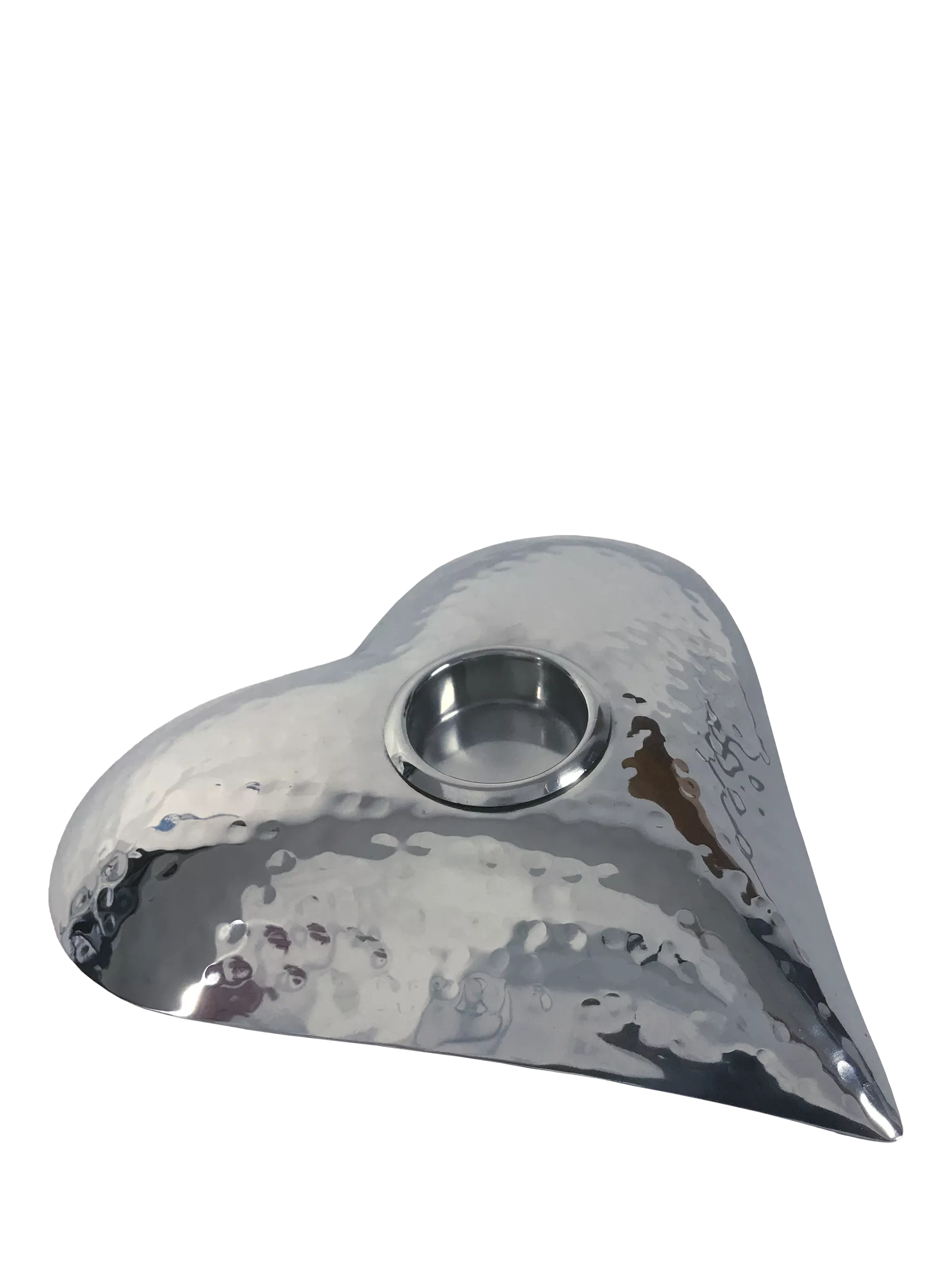 Beautifully heart-shaped tealight holder made of hammered stainless steel. A simple and elegant way to add a romantic glow to your living space.