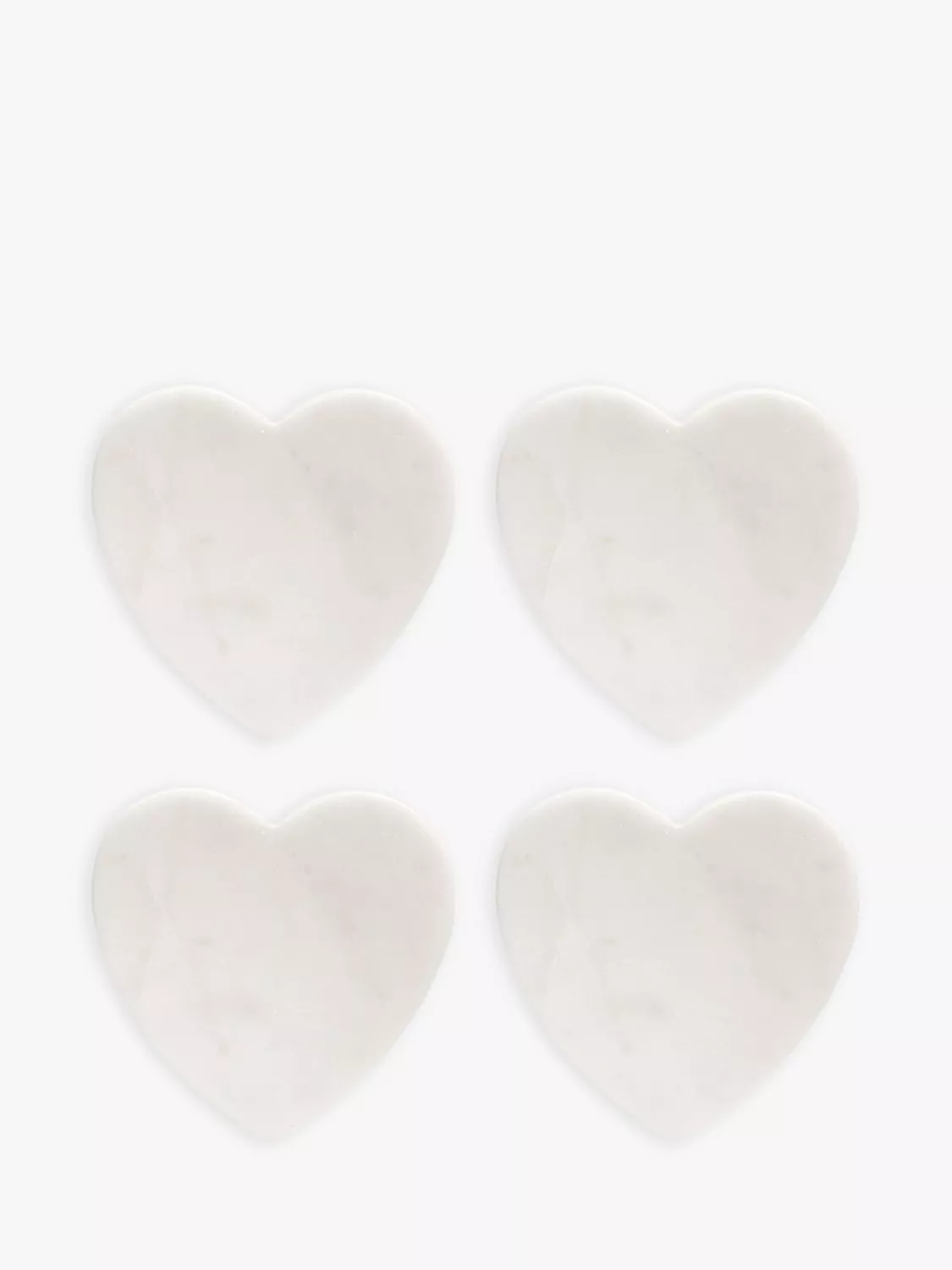 Four heart-shaped marble coasters from Culinary Concepts. The coasters showcase natural marble variations, making each one slightly different.