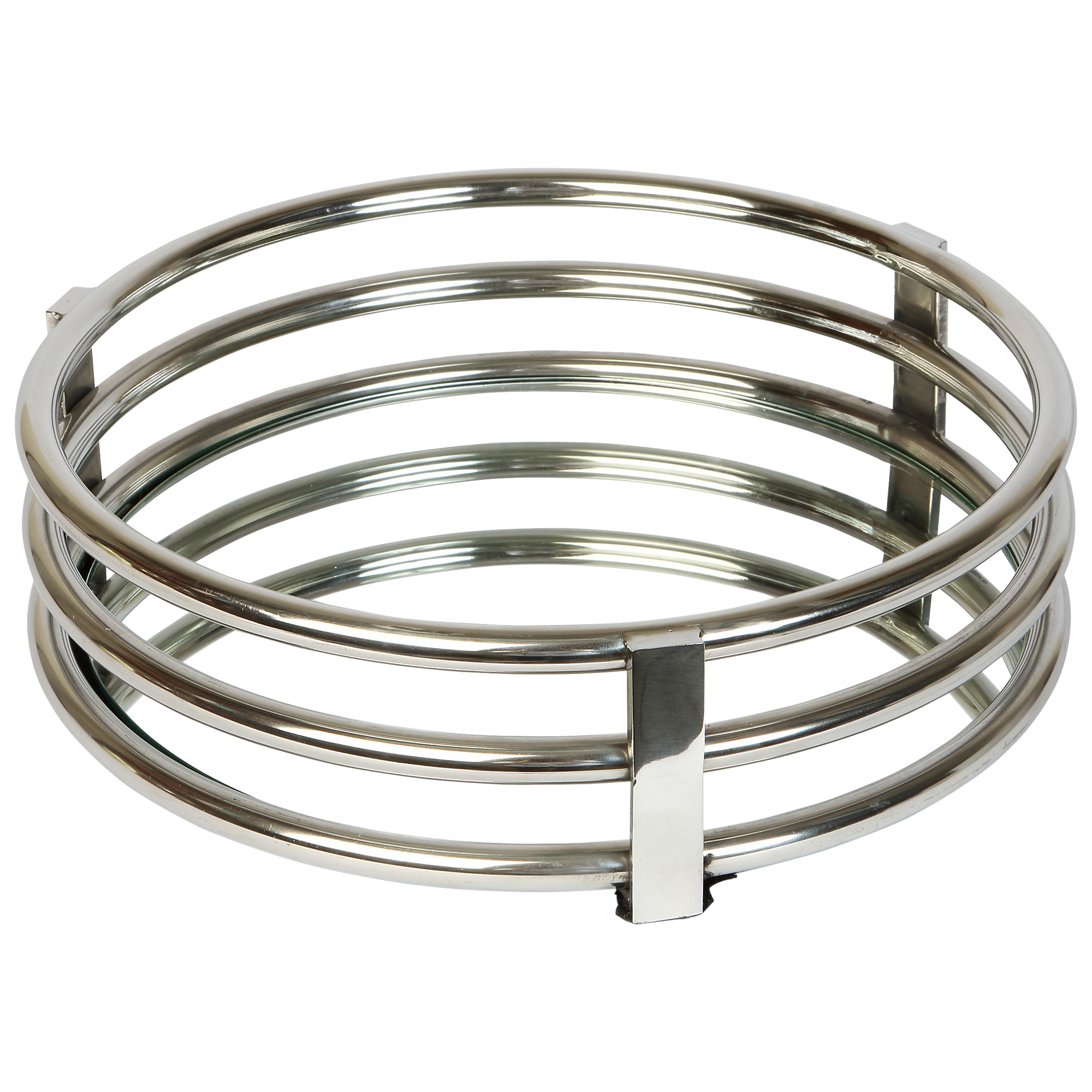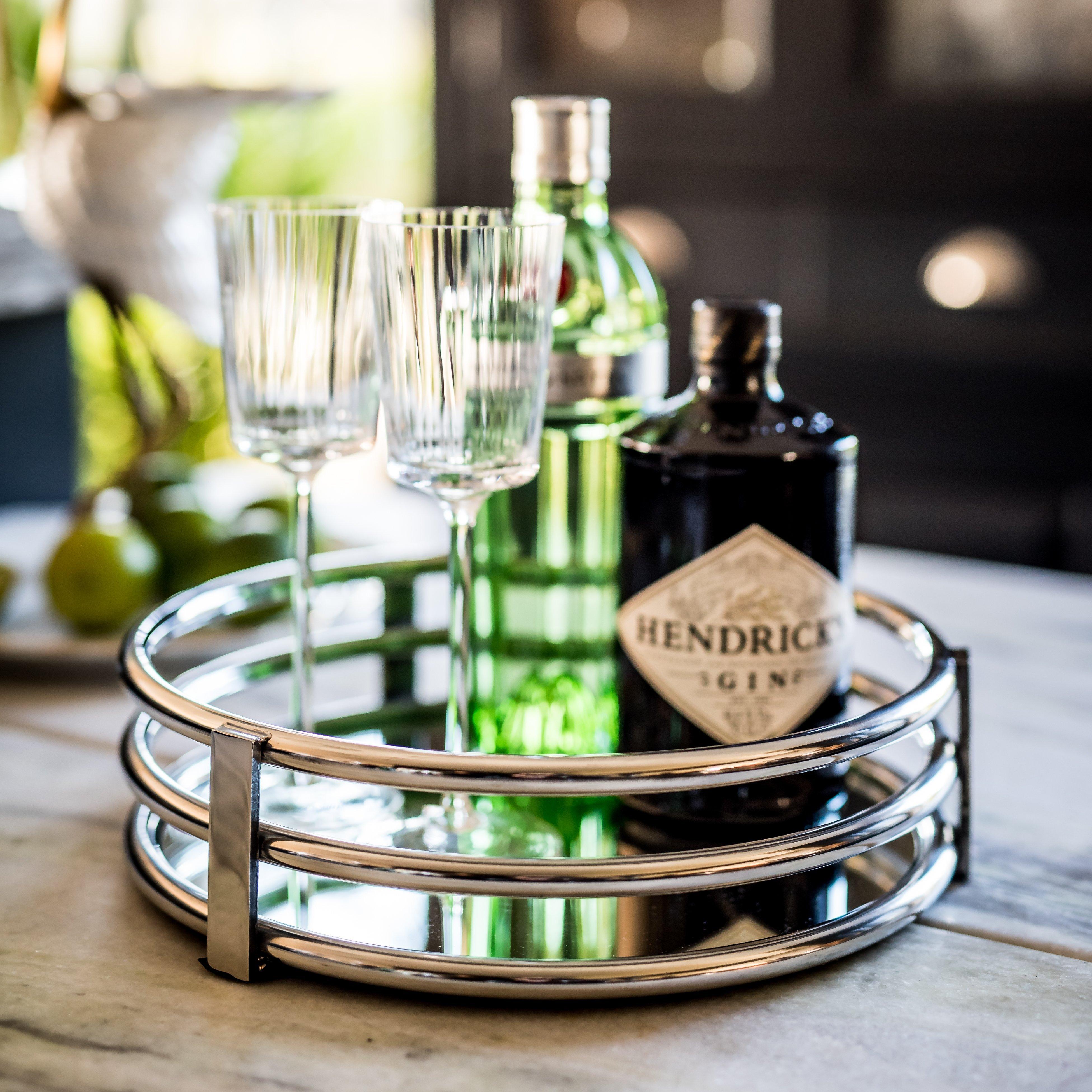 This Round Ribbed Mirrored Drinks Tray from Culinary Concepts features simple, elegant lines to create a timeless appeal.