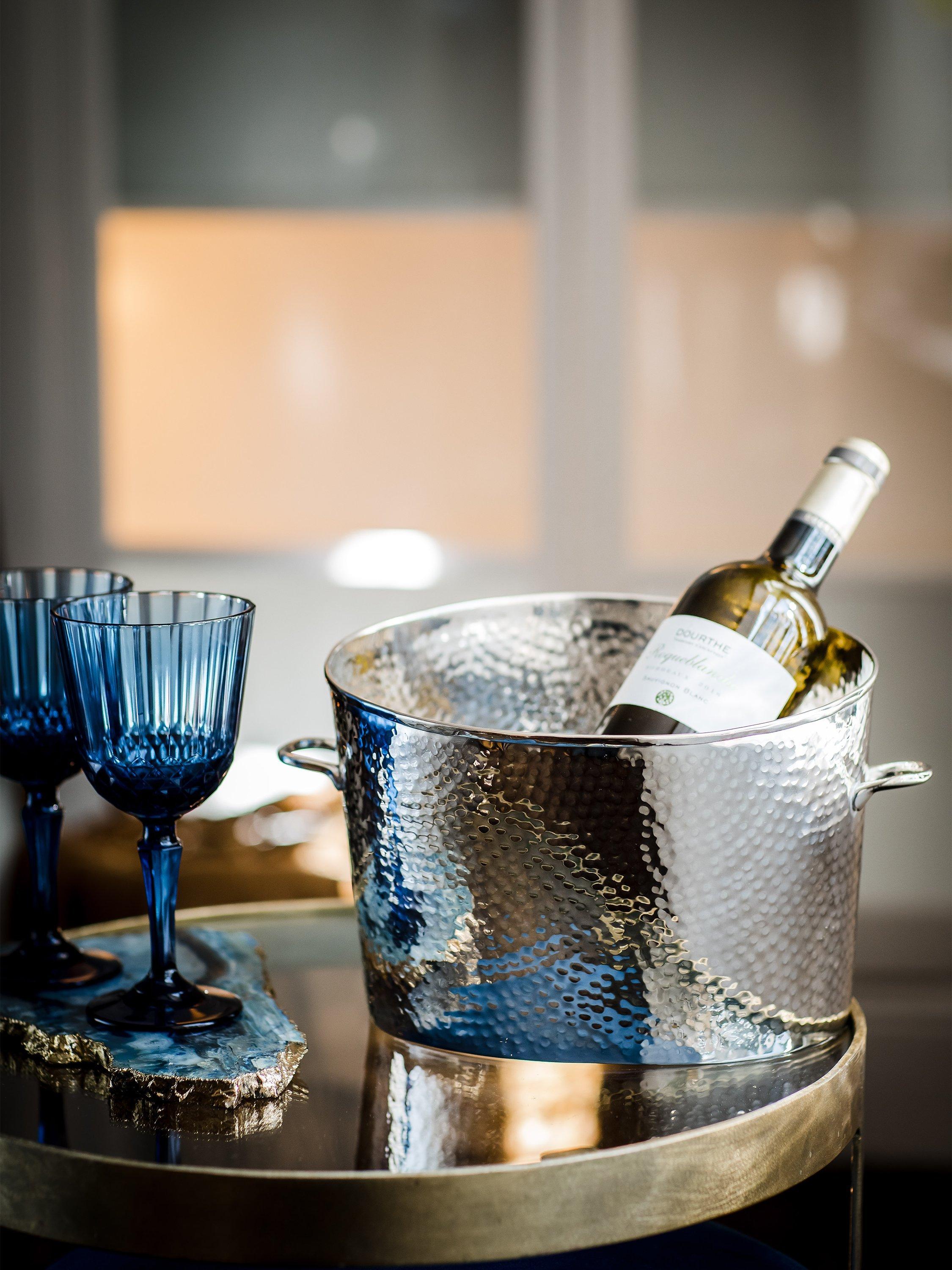 Keep your favourite fizz perfectly chilled with this glamorous silver-plated champagne bath.