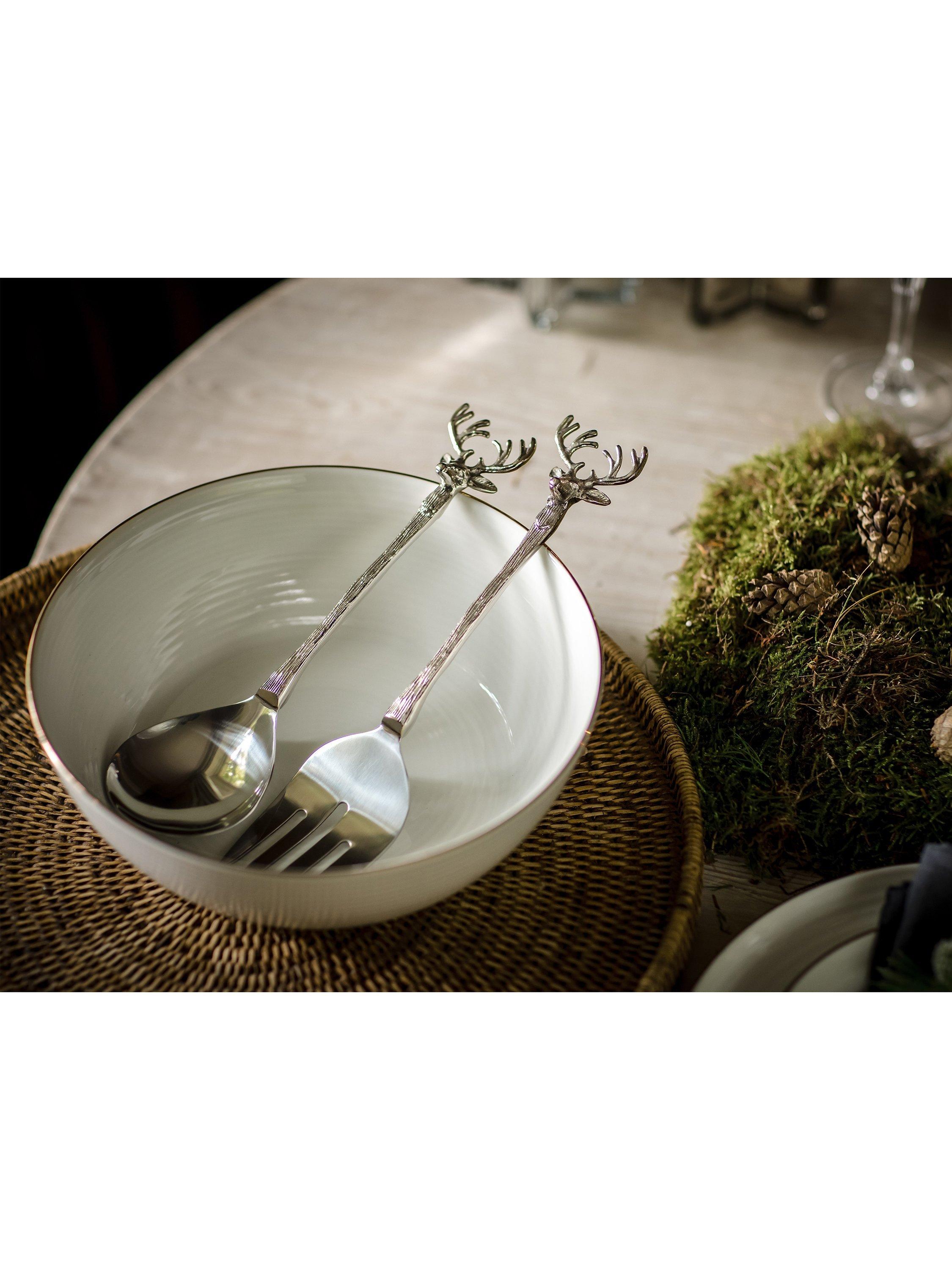 Inspired by the stature and beauty of a stag, these salad servers from Culinary Concepts are nickel plated, giving them a wonderful and decorative finish that won't corrode over time.