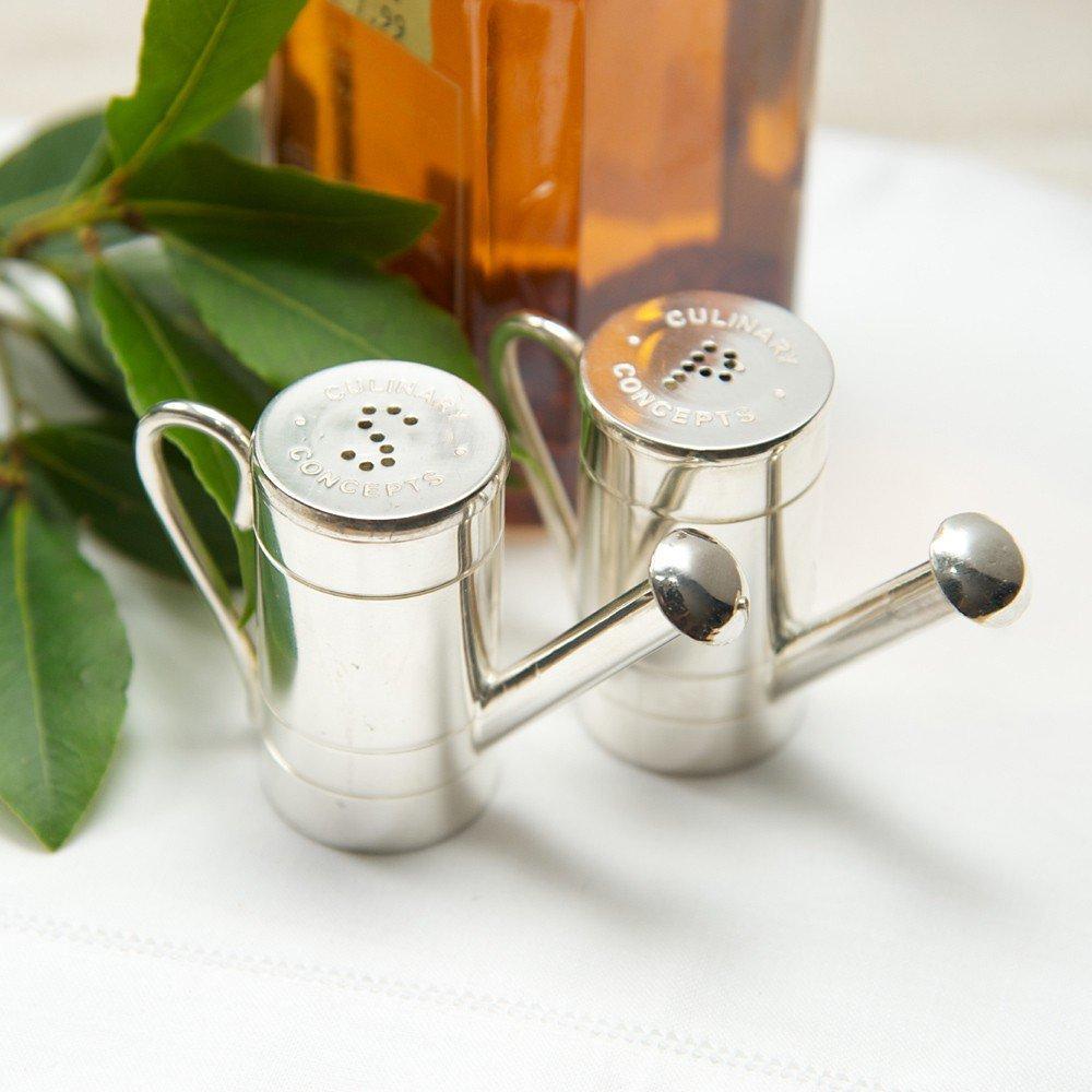Add a quirky touch to dinner parties and present salt and pepper in the watering can shakers by Culinary Concepts. Silver plated, with handle and decorative spout.