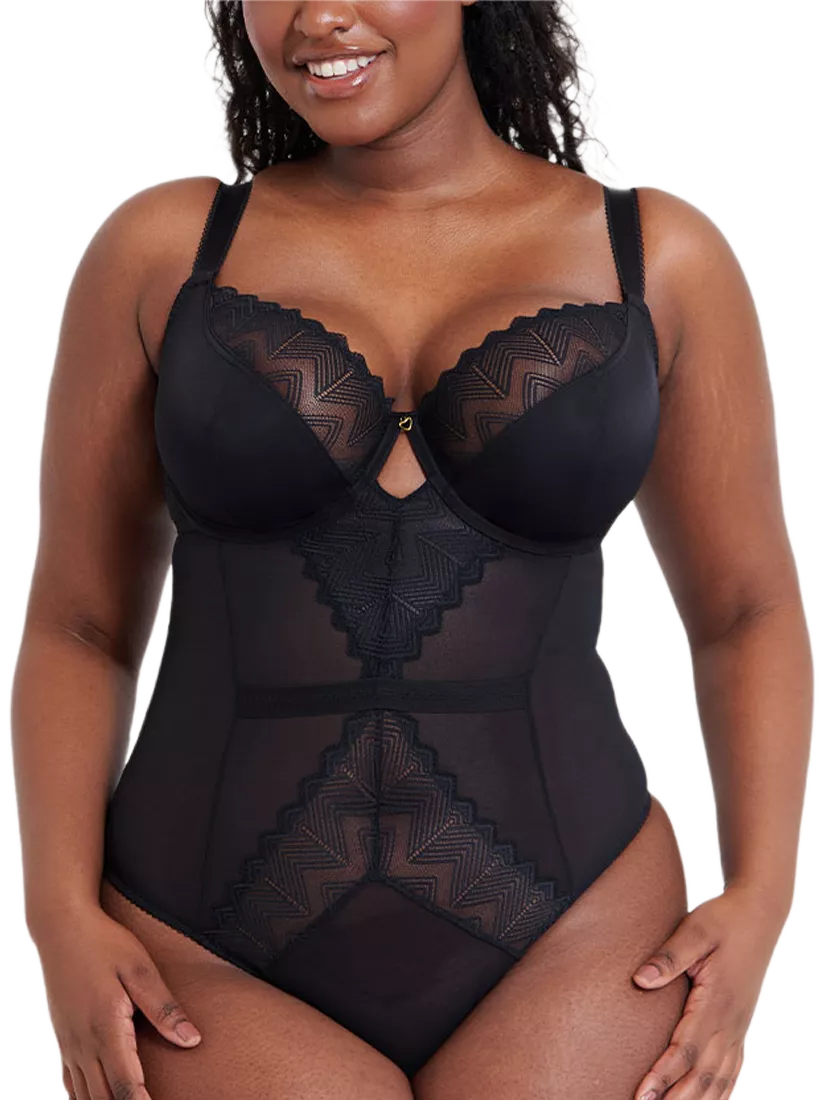 Blending all the support of your a balcony bra with the sleekness of a bodysuit, Wild One features underwired, non-padded cups with a stretch lace top panel. It balances shape and structure with feminine lace details throughout. Designed to offer both a sculpted silhouette and a daring lingerie-as-outerwear style.