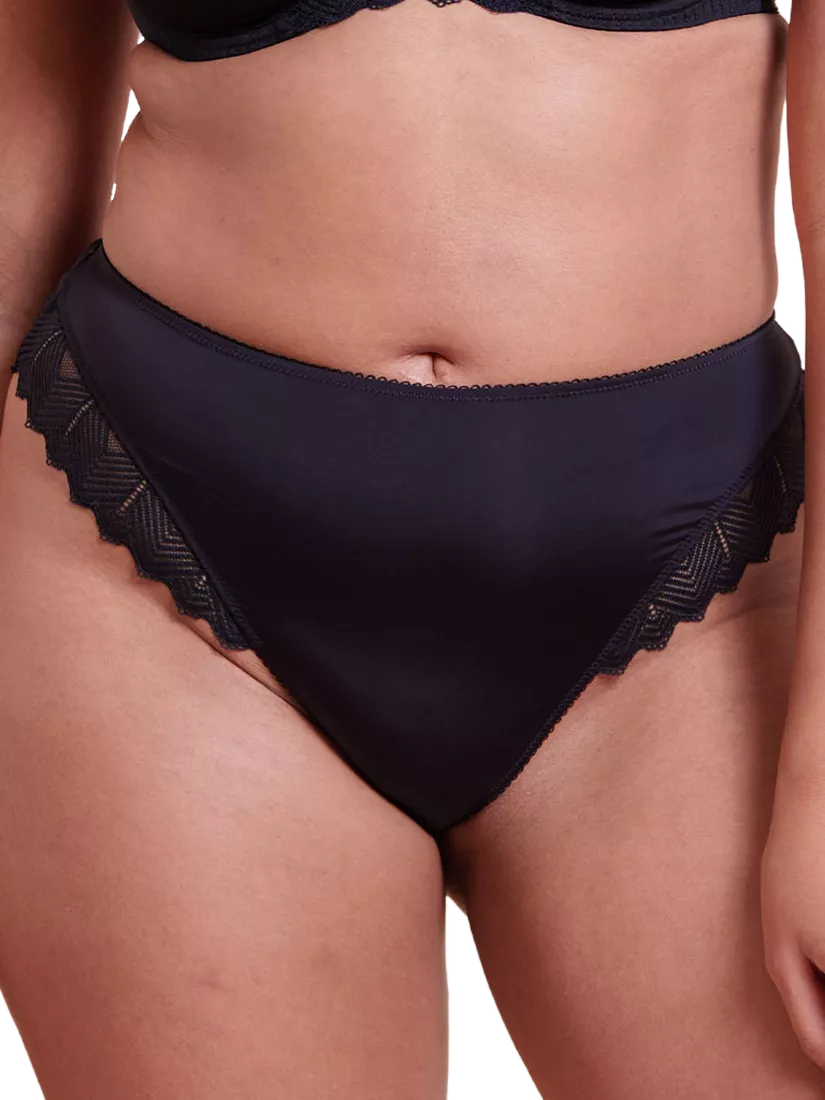 Crafted from soft microfibre and adorned with geometric lace edging at the back, offering a flattering and cheeky cut.