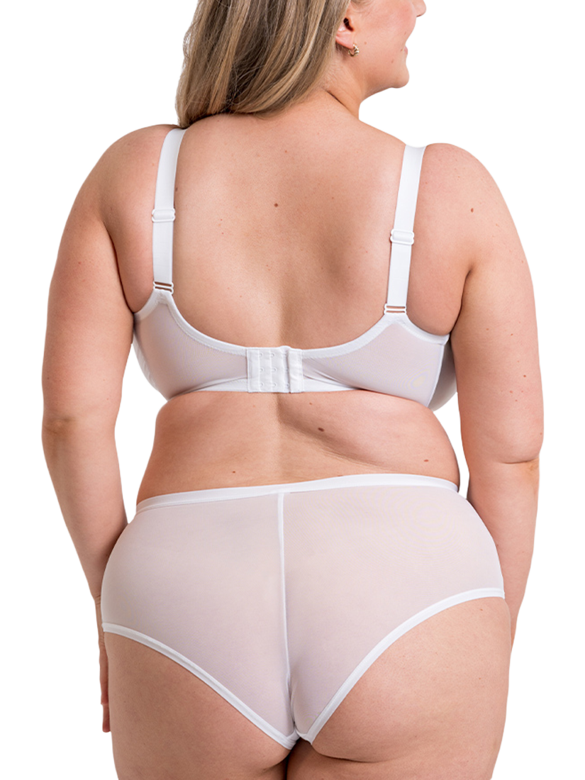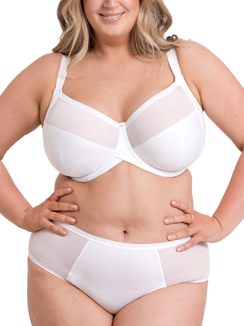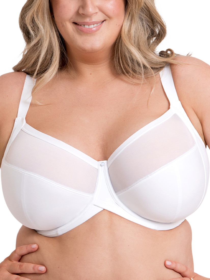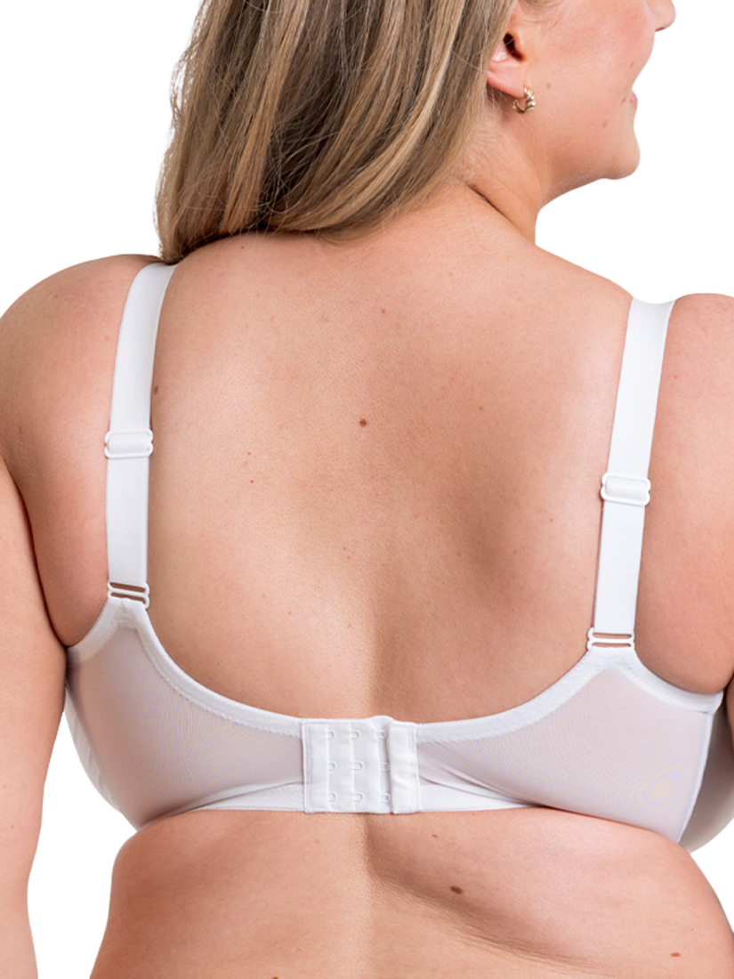 Packed with technical features, this Full Cup Bra with side support, has all day comfort at the forefront of its design. The sleek microfibre cups have stretch mesh top cup panels for a flexible fit, plus anchored back straps to banish strap slippage and a curved underband to reduce roll and discomfort.