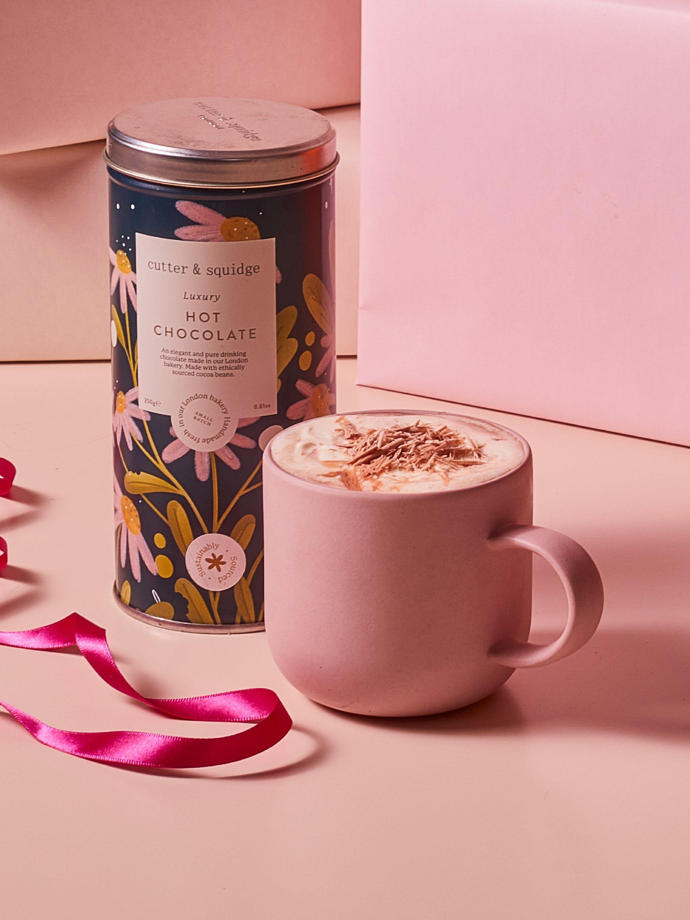 This tasty hamper is filled with a selection of sweet signature delights from Cutter and Squidge: Cinnamon Cookie Bites, Salted Caramel Fudge, Hot Chocolate, Lychee Tea, White Chocolate Strawberry Meringue Bark, Vanilla Shortbread and Strawberry Jam. Presented in a Cutter & Squidge gift box - tea towel included.