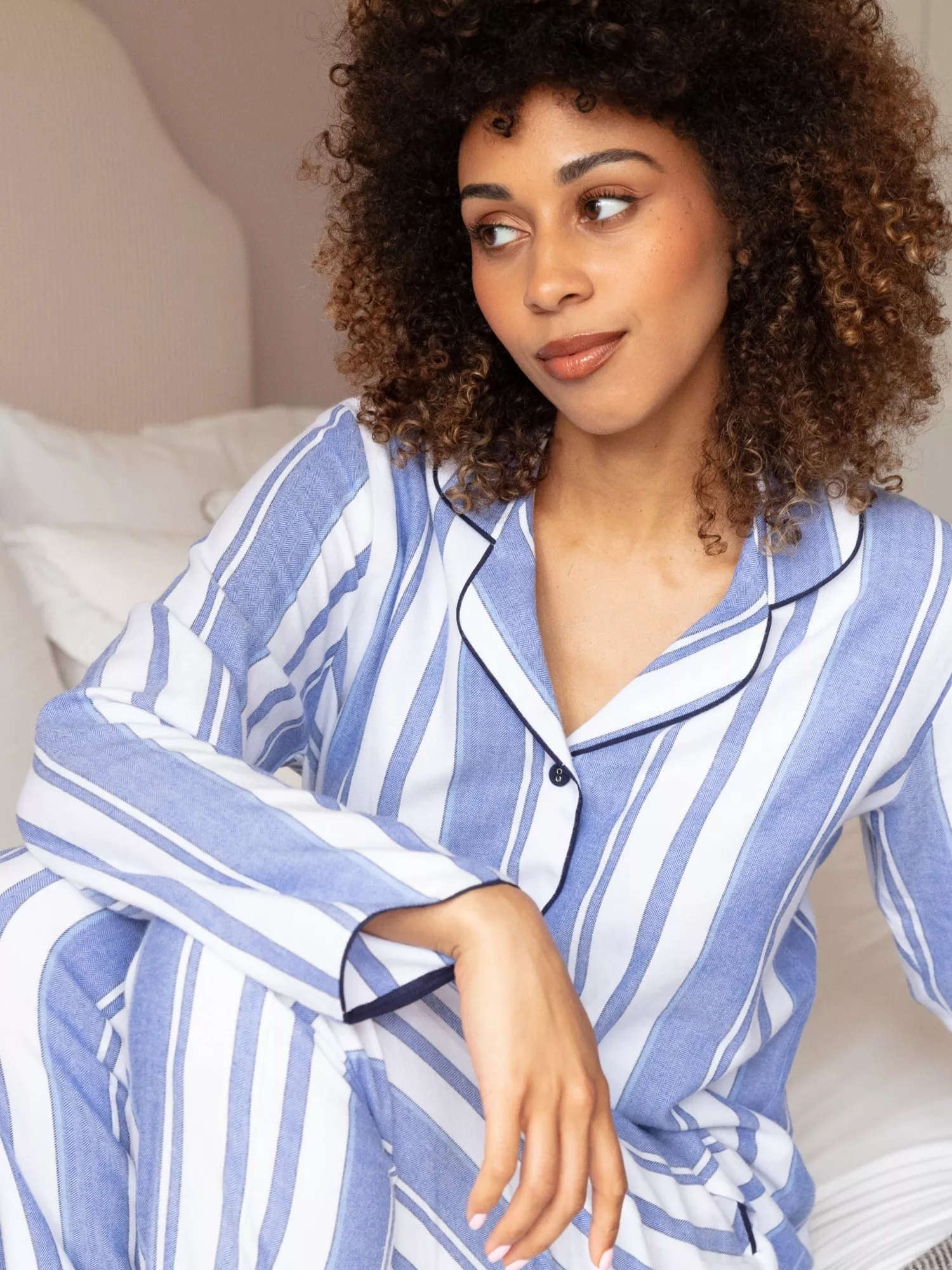 Introducing the Alpes Stripe Long Sleeve Pyjama Set – the perfect blend of comfort and style, designed to make your nights peaceful and your mornings chic after a restful night of sleep. Crafted from 100% cotton, this matching set wraps your body in a soft, breathable fabric, ensuring you wake up refreshed and relaxed. The simple, vertically striped pattern is a well known classic that’s the perfect outfit for an early morning coffee as the sun rises. Effortlessly sophisticated with a 100% modal trim and revere collar, combined with matching modal-covered buttons and drawstring for a coherent look, this set is certain to make you the spotlight of your evenings and mornings.
