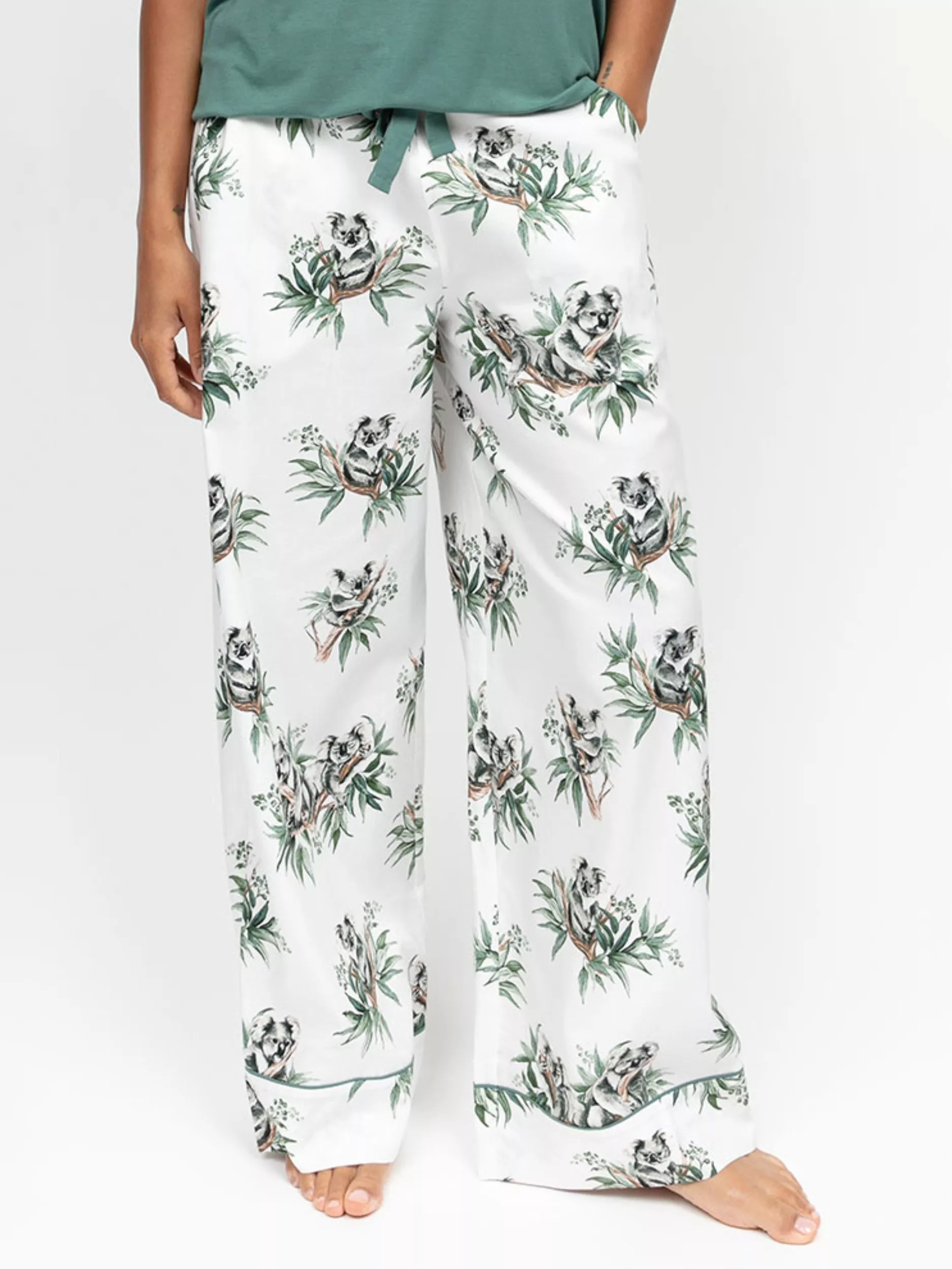 Made to make you extra comfy in the quiet moments of your downtime, introducing the Kallie Koala Print Pyjama Bottoms. Woven from a super-soft blend of 60% cotton and 40% modal, these bottoms offer a gentle touch against the skin - light and breathable for nights that need a little extra. Designed for lounging made easy, these pyjama bottoms feature an elasticated back waist, two side pockets to keep your hands cosy, and a wide-leg silhouette that flows into a straight cuffed hem to create a structured finish.