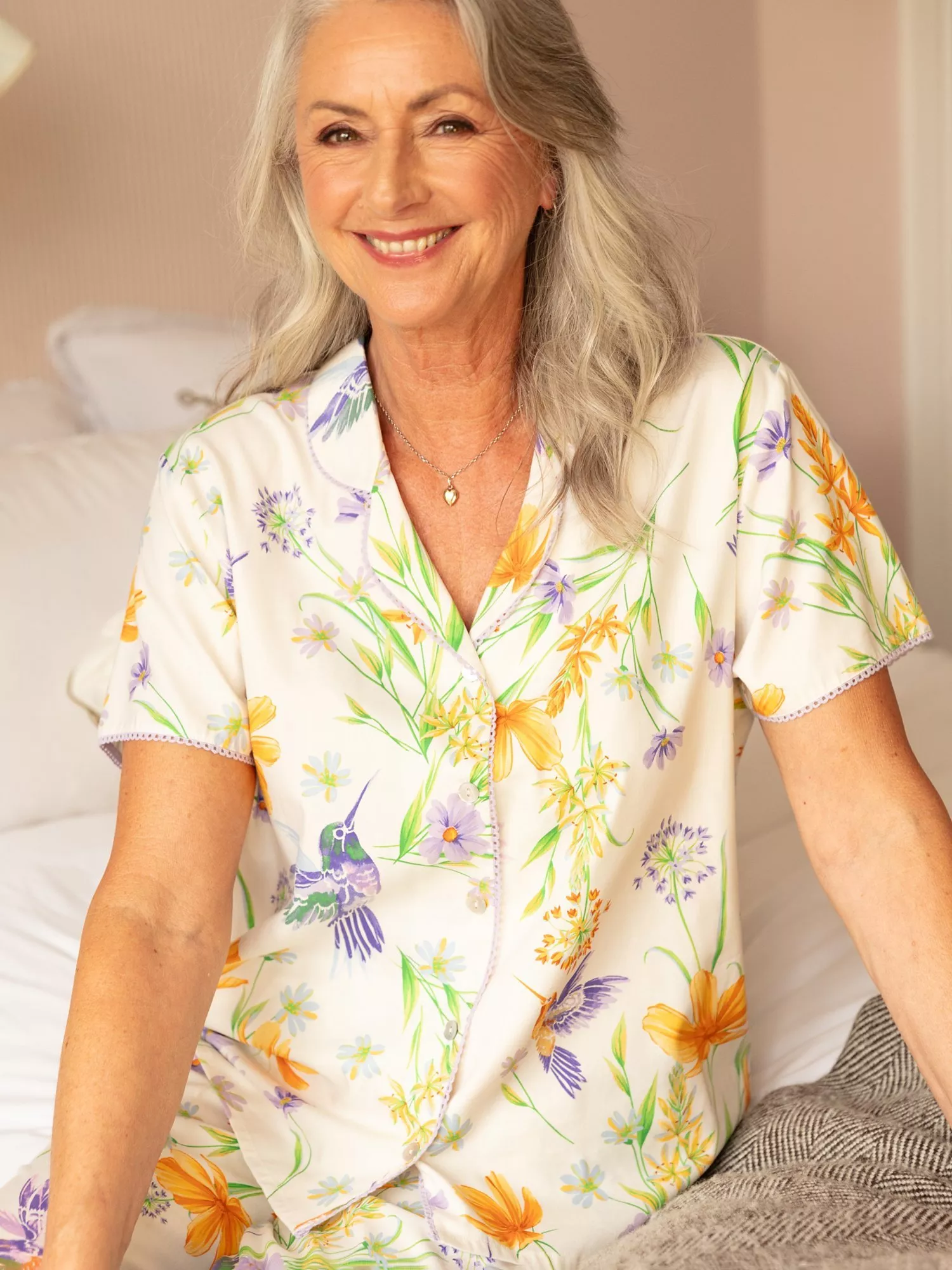 With a beautiful floral and hummingbird print, this short-sleeve pyjama set by Cyberjammies is stitched together from a supremely soft cotton blend for use throughout the year comes with matching bottoms.