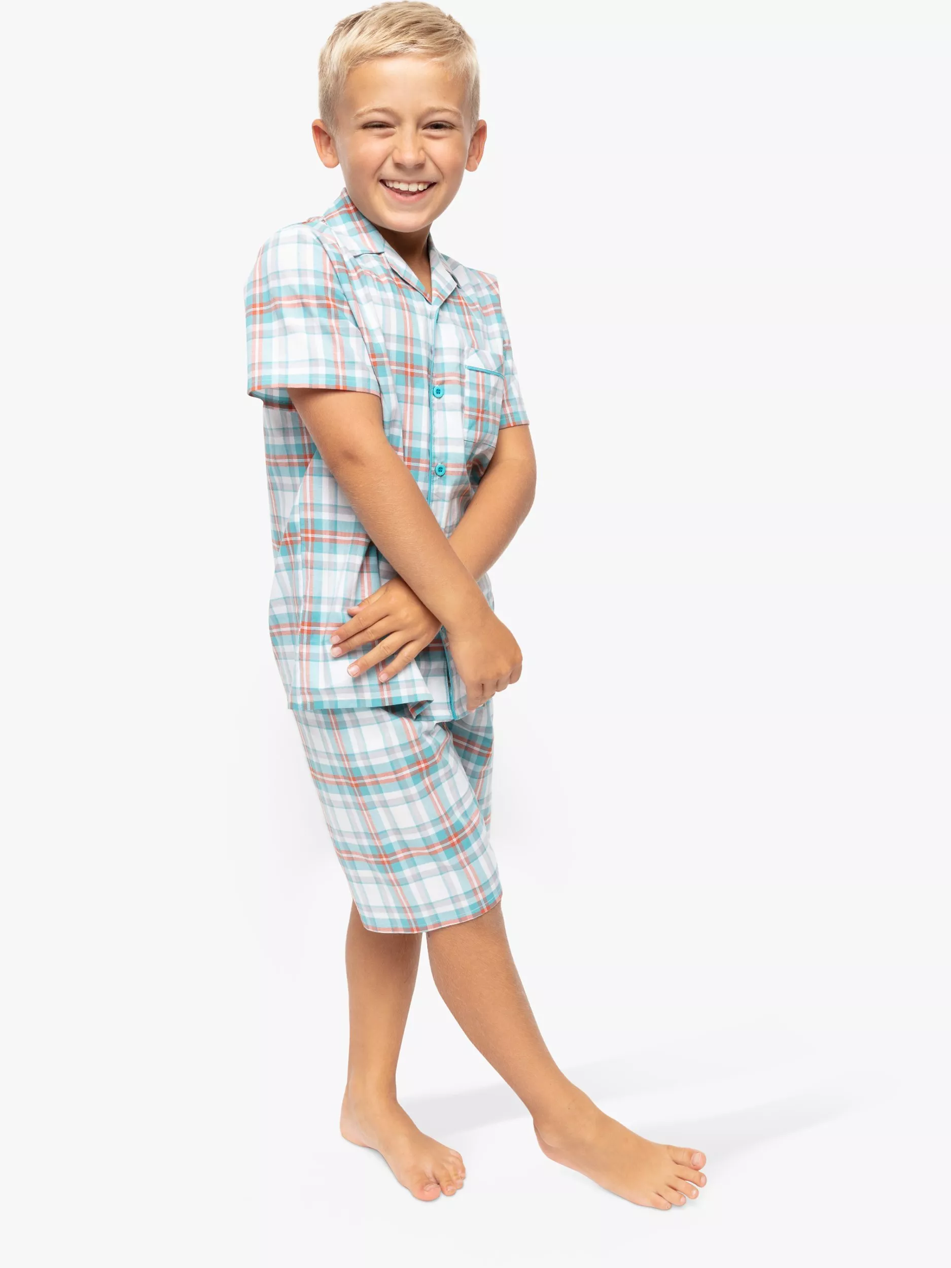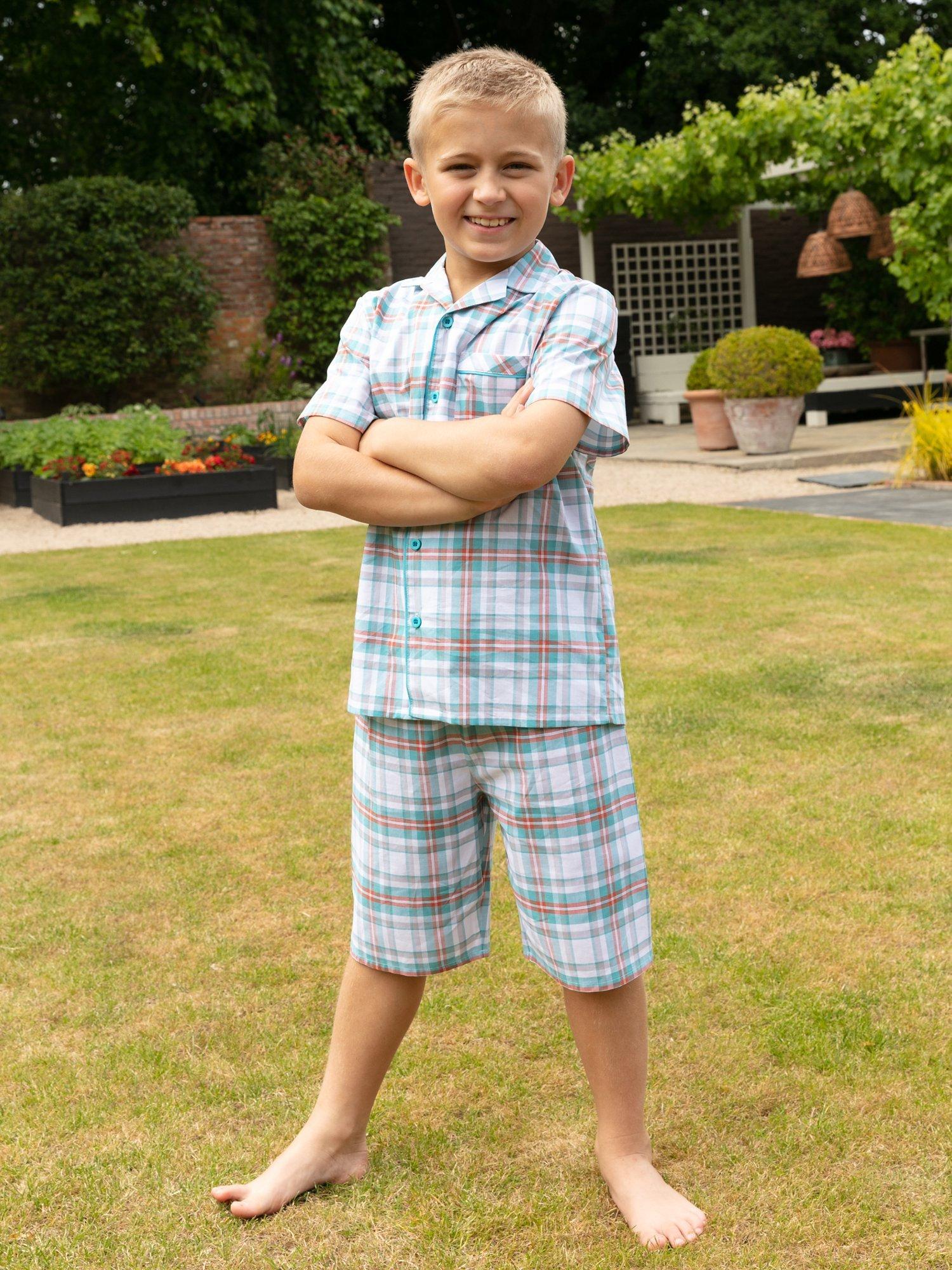 This shorty pyjama set is perfect for summer bedtimes. Made from a cotton, the short sleeved top is designed with an open collar and button fastenings. The shorts are elasticated at the waist with an adjustable front drawstring for a comfy fit.