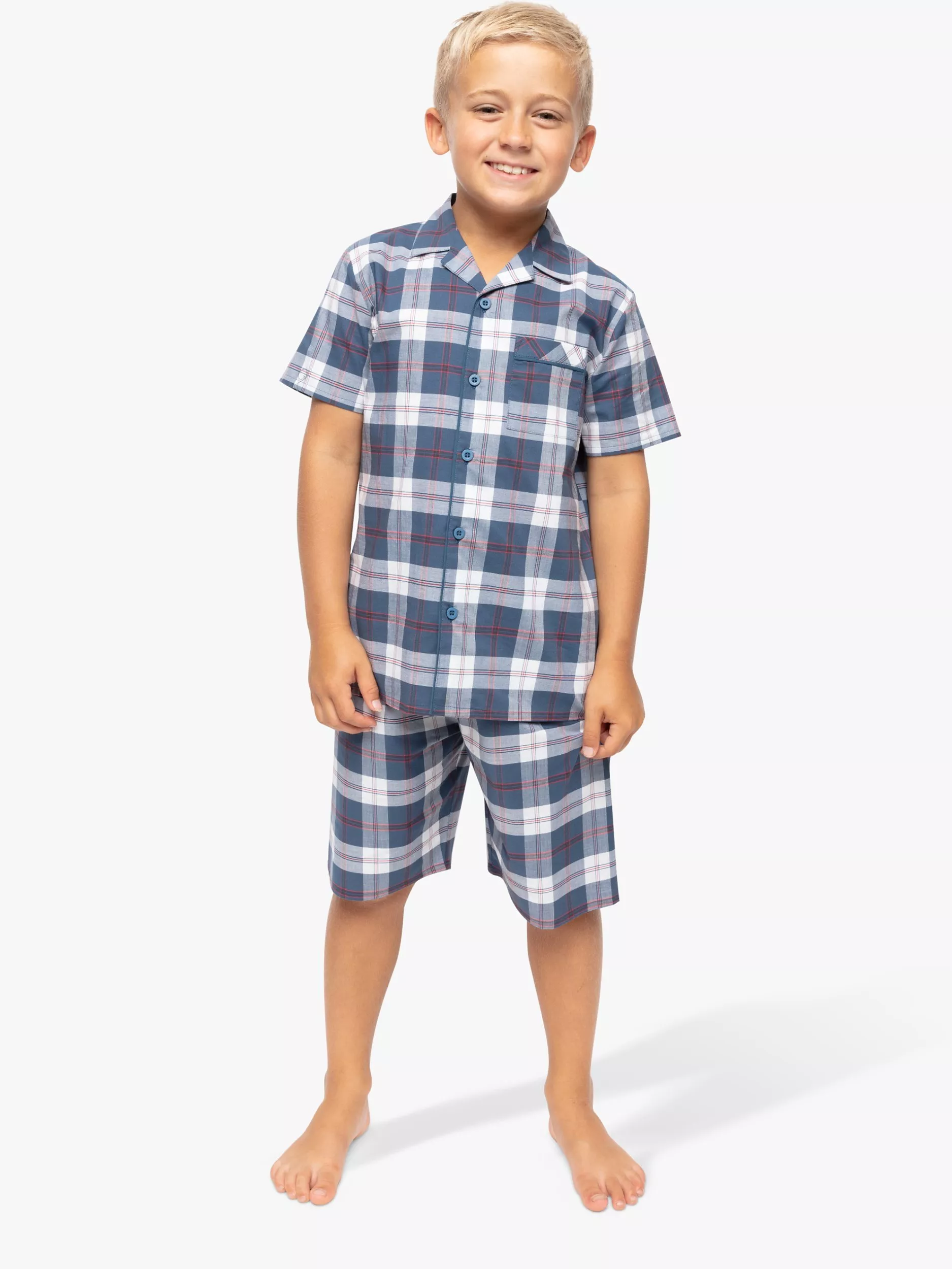 This shorty pyjama set is perfect for summer bedtimes. Made from a cotton, the short sleeved top is designed with an open collar and button fastenings. The shorts are elasticated at the waist with an adjustable front drawstring for a comfy fit.