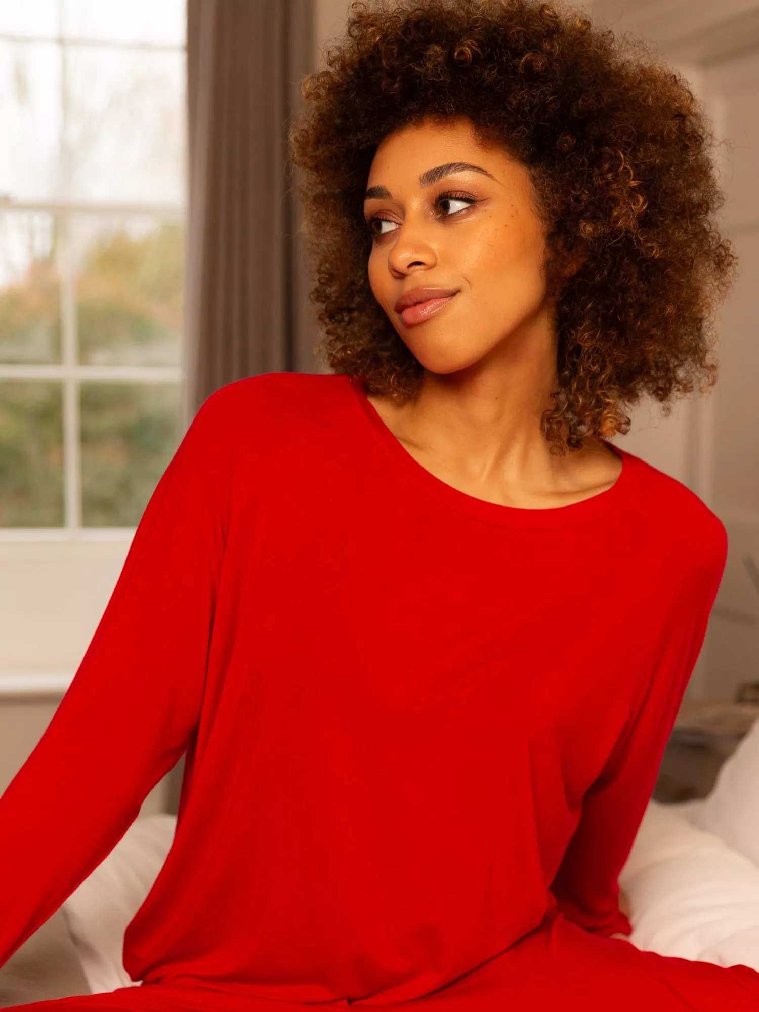 Experience unmatched comfort and timeless style with the Montana Slouch Jersey Pyjama Top. Crafted from a beautifully soft fabric blend of 95% modal and 5% elastane, The vibrant hue adds a touch of warmth and sophistication to your nighttime ensemble. Designed with long sleeves and a round front and back neck, this pyjama top wraps you in cosy comfort. The subtle self-fabric trim and modal back neck tape elevate its understated elegance, while the bottom hem panel offers a refined finish.