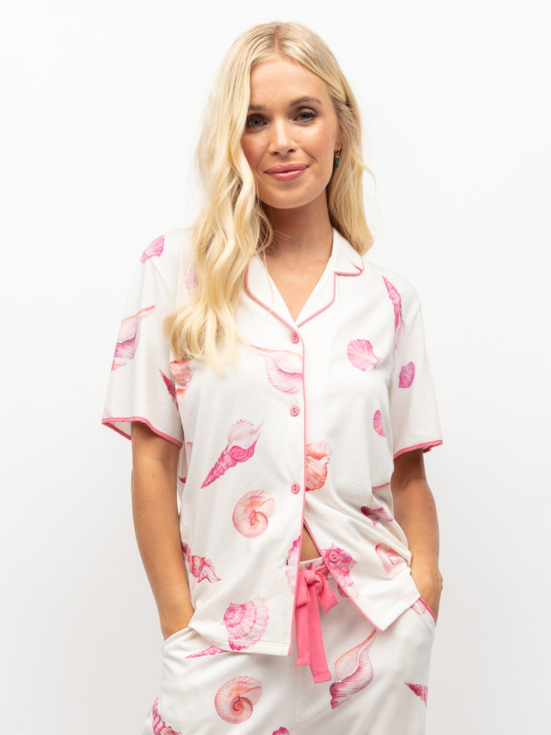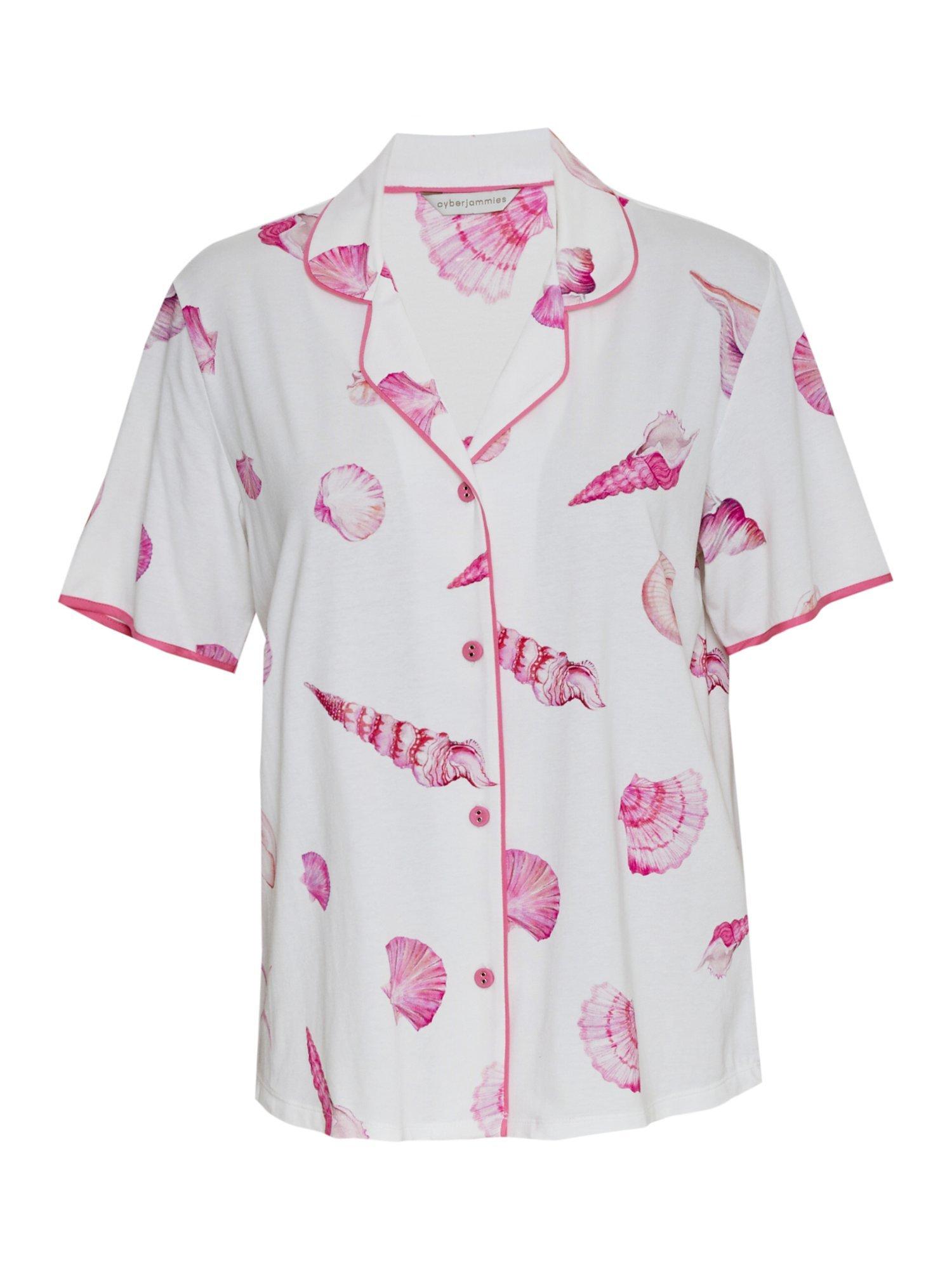 CyberjammiesShelly Shell Print Jersey Pyjama Top, Cream