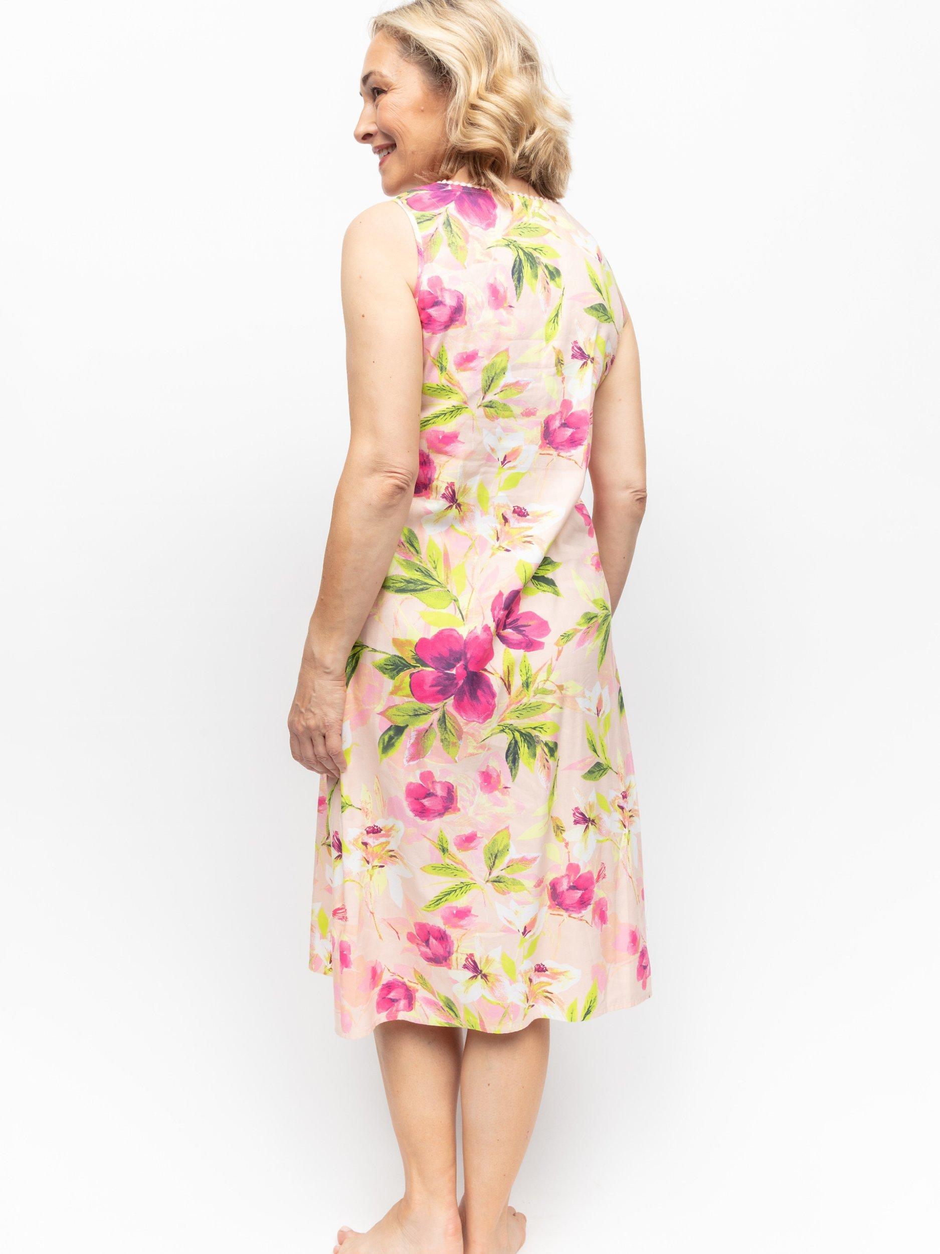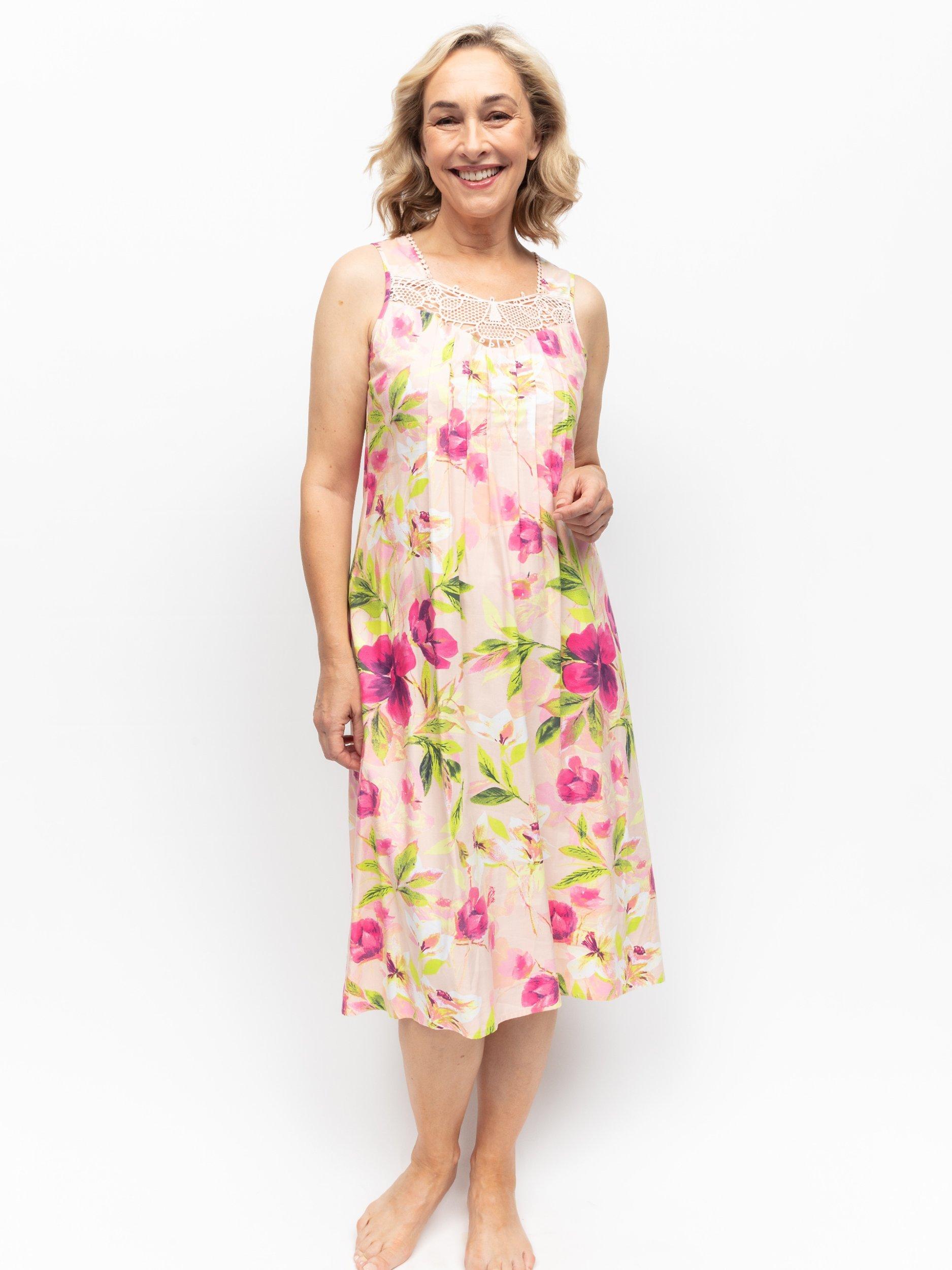 A springtime dream, this sleeveless lace detail floral nightie from Cyberjammies is crafted from a soft cotton-modal blend for breathability and comfort and falls to a versatile midi length.