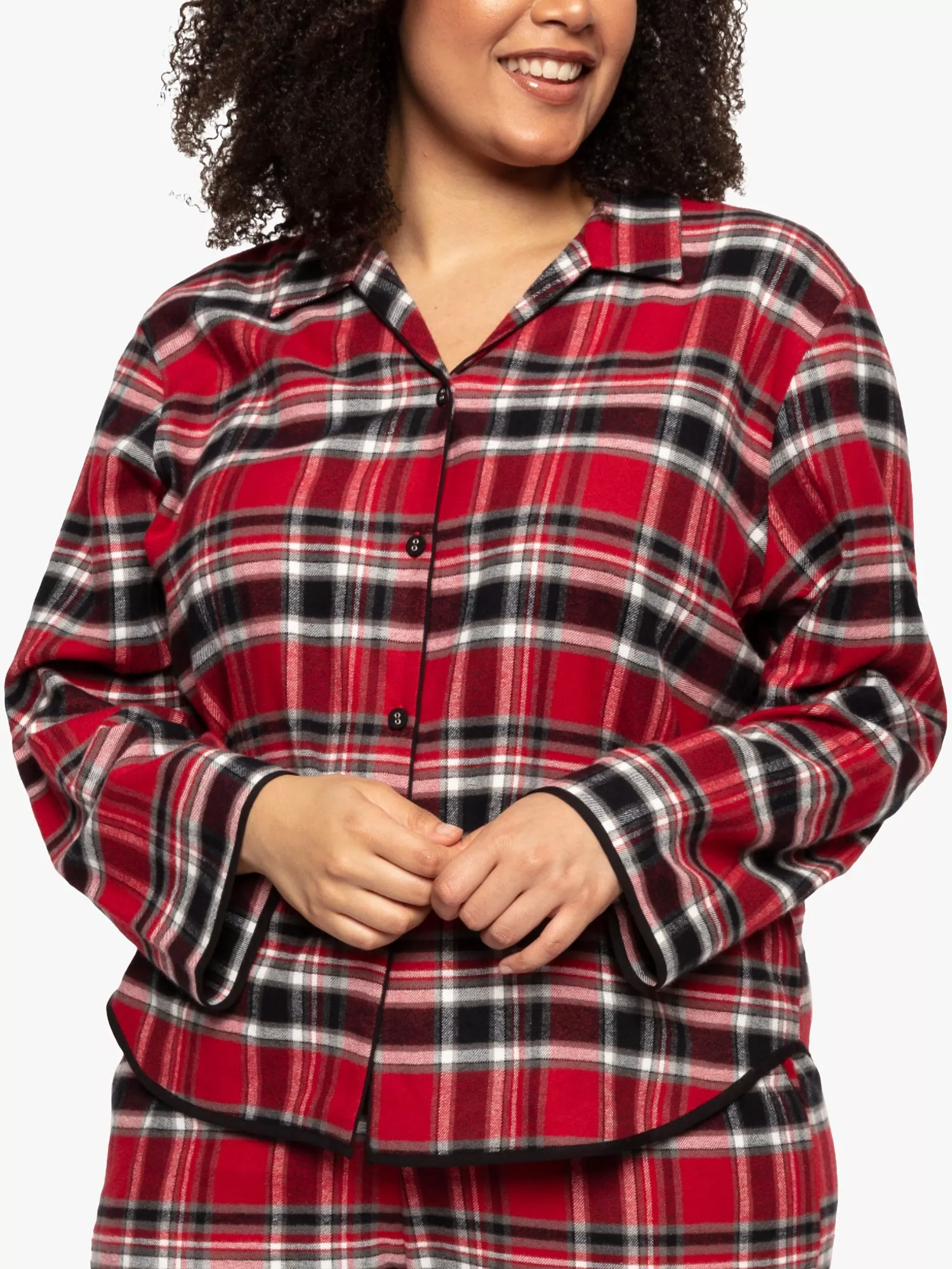 There's nothing cosier than check nightwear in the winter and the Cyberjammies Windsor pyjama shirt is made from brushed 100% cotton for an even cosier feel. Trimmed with black modal it's long-sleeved with an open collar and fastens at the front with black, modal-covered buttons. Wear it with the matching pyjama trousers for the perfect way to lounge or sleep when temperatures tumble.