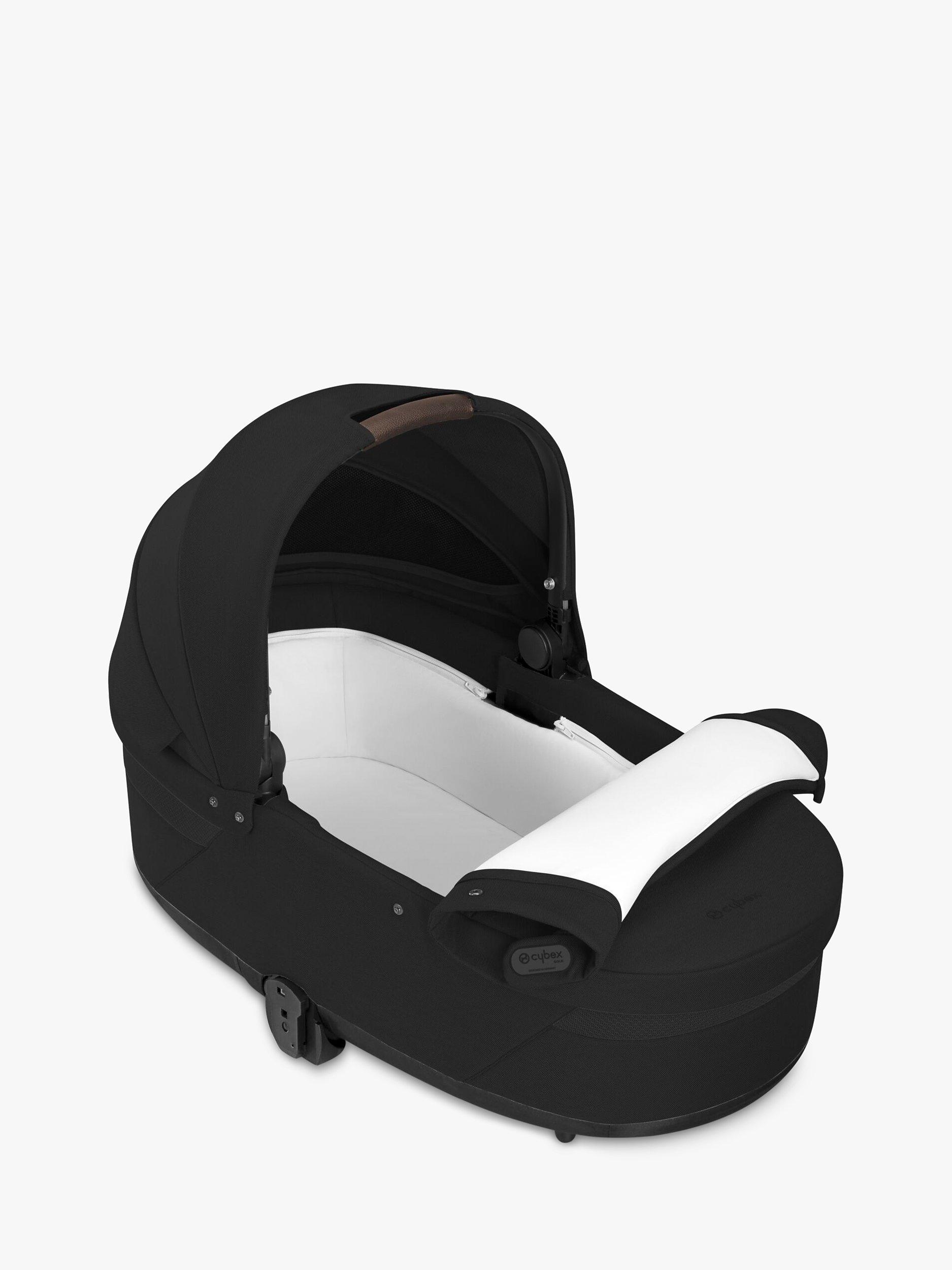 The new Cot S Lux Carrycot is ideal for babies from birth until they are approximately six months old. Approved for overnight sleeping and with a cosy interior lining and soft foam mattress, the Cot S Lux offers maximum comfort and support. Simply click the carrycot to the Cybex Balios S Lux or pushchair frame (sold separately) and you’re ready to go. Removing the carrycot from the frame is just as easy using the memory buttons and integrated carrying handle. The new Cot S Lux has an additional internal pocket to keep belongings safe, a panorama sky view window for improved air circulation and a UPF50+ XXL sun canopy, keeping your baby protected from day one.