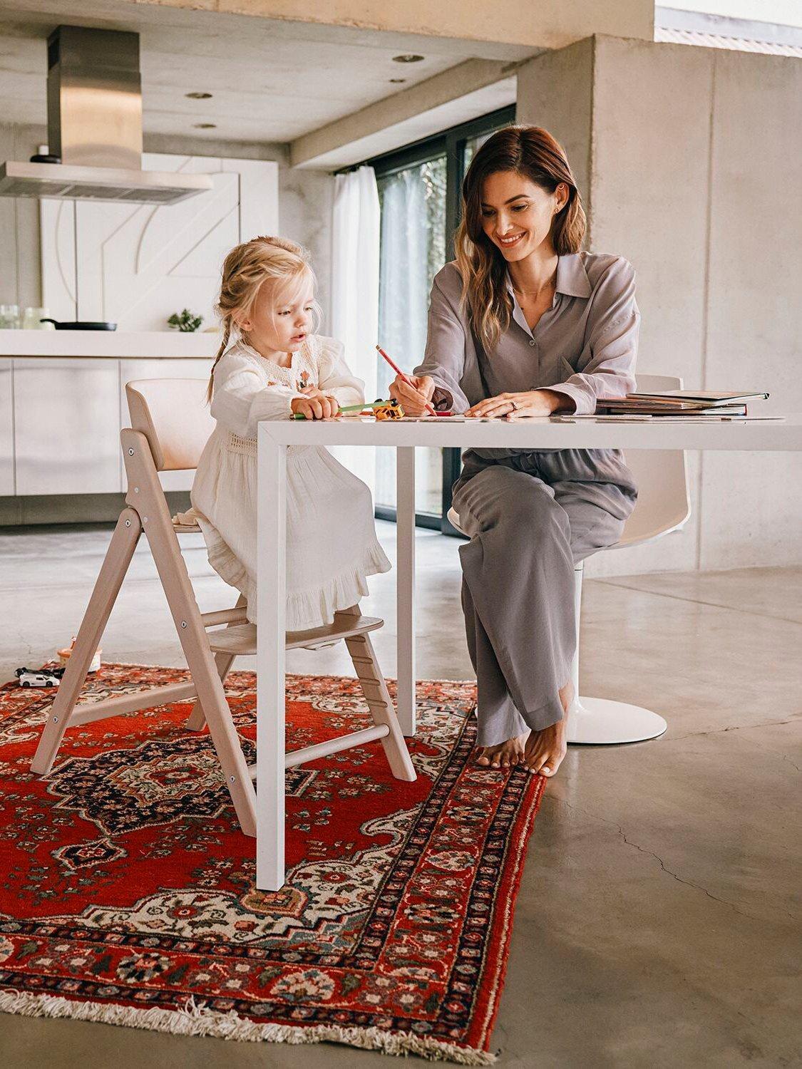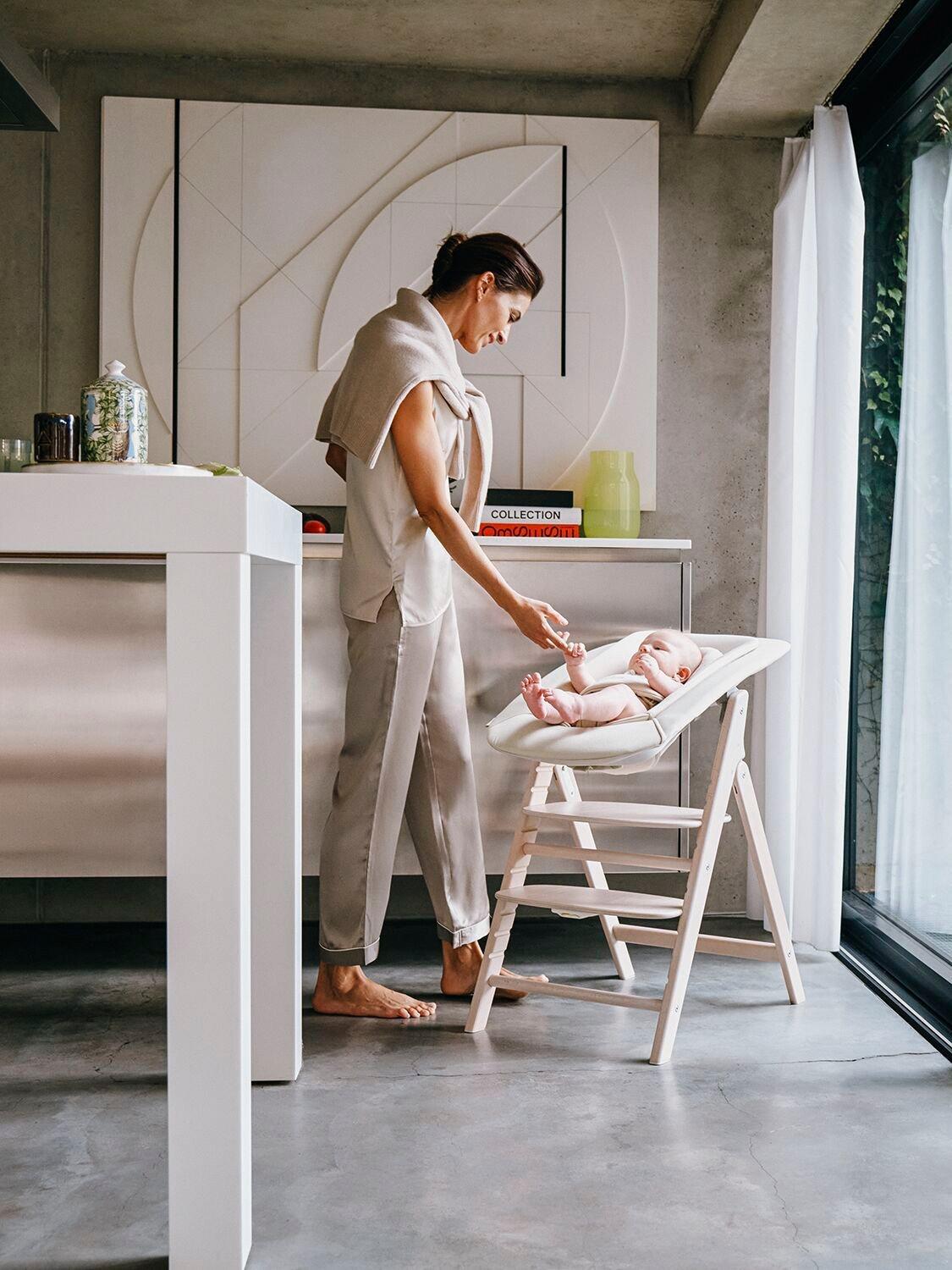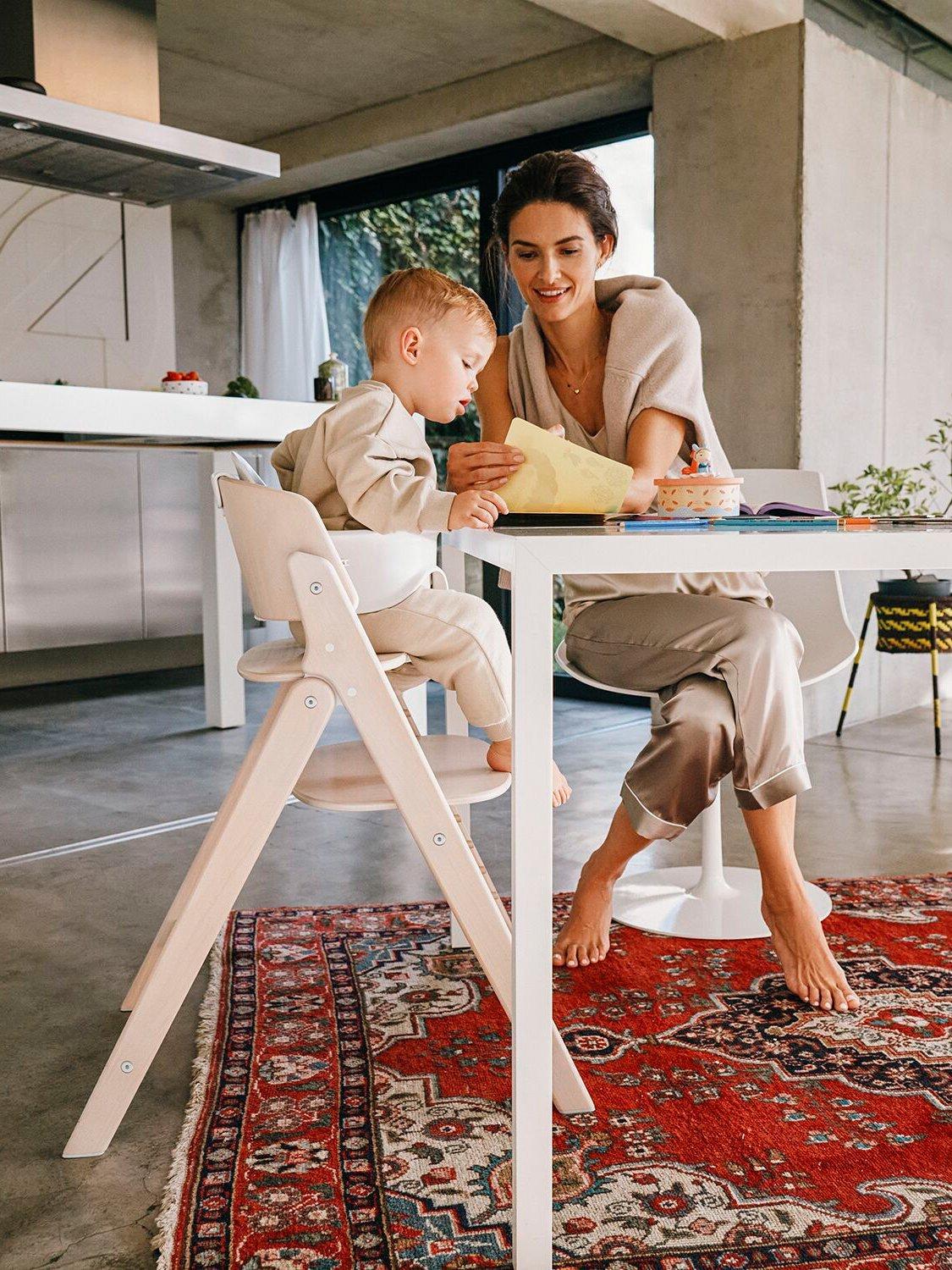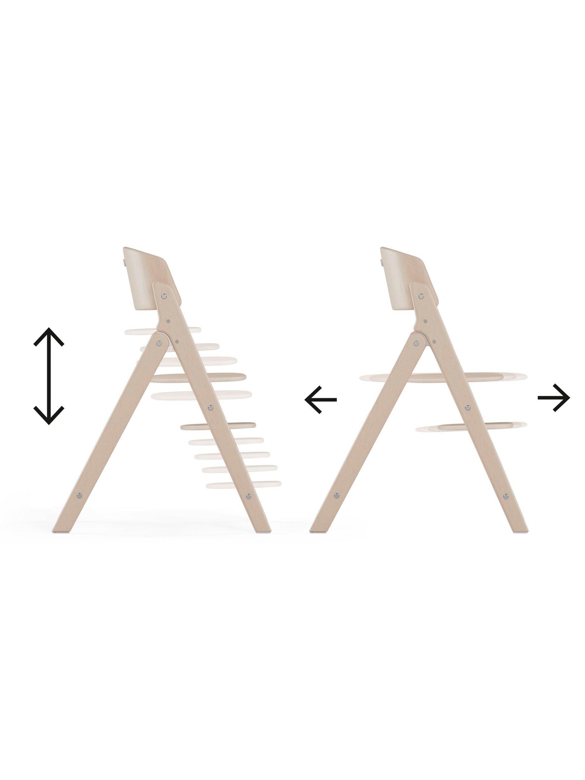 The essence of craftsmanship shines in the beechwood CLICK & FOLD highchair's iconic design. With a reassuring click upon unfolding, it instils trust and embodies the essence of artistry. Its bold, straight edges and curved backrest create an elegant piece of furniture suitable for any home. Ingenious engineering allows a single, smooth fold to transform the highchair into a compact, easily storable size, perfect for modern living. Suitable from birth to 99 years, the CLICK & FOLD 4-in-1 set includes a bouncer nest, baby set with tray, and highchair. It is your lifelong companion, blending design and functionality seamlessly.