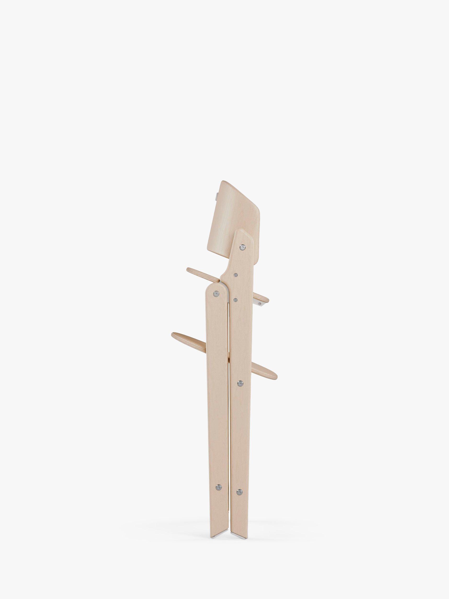 The essence of craftsmanship shines in the beechwood CLICK & FOLD highchair's iconic design. With a reassuring click upon unfolding, it instils trust and embodies the essence of artistry. Its bold, straight edges and curved backrest create an elegant piece of furniture suitable for any home. Ingenious engineering allows a single, smooth fold to transform the highchair into a compact, easily storable size, perfect for modern living. CLICK & FOLD offers a range of solutions for all ages, including a bouncer nest, baby set with tray (sold separately), or simple highchair. It is your lifelong companion, blending design and functionality seamlessly.