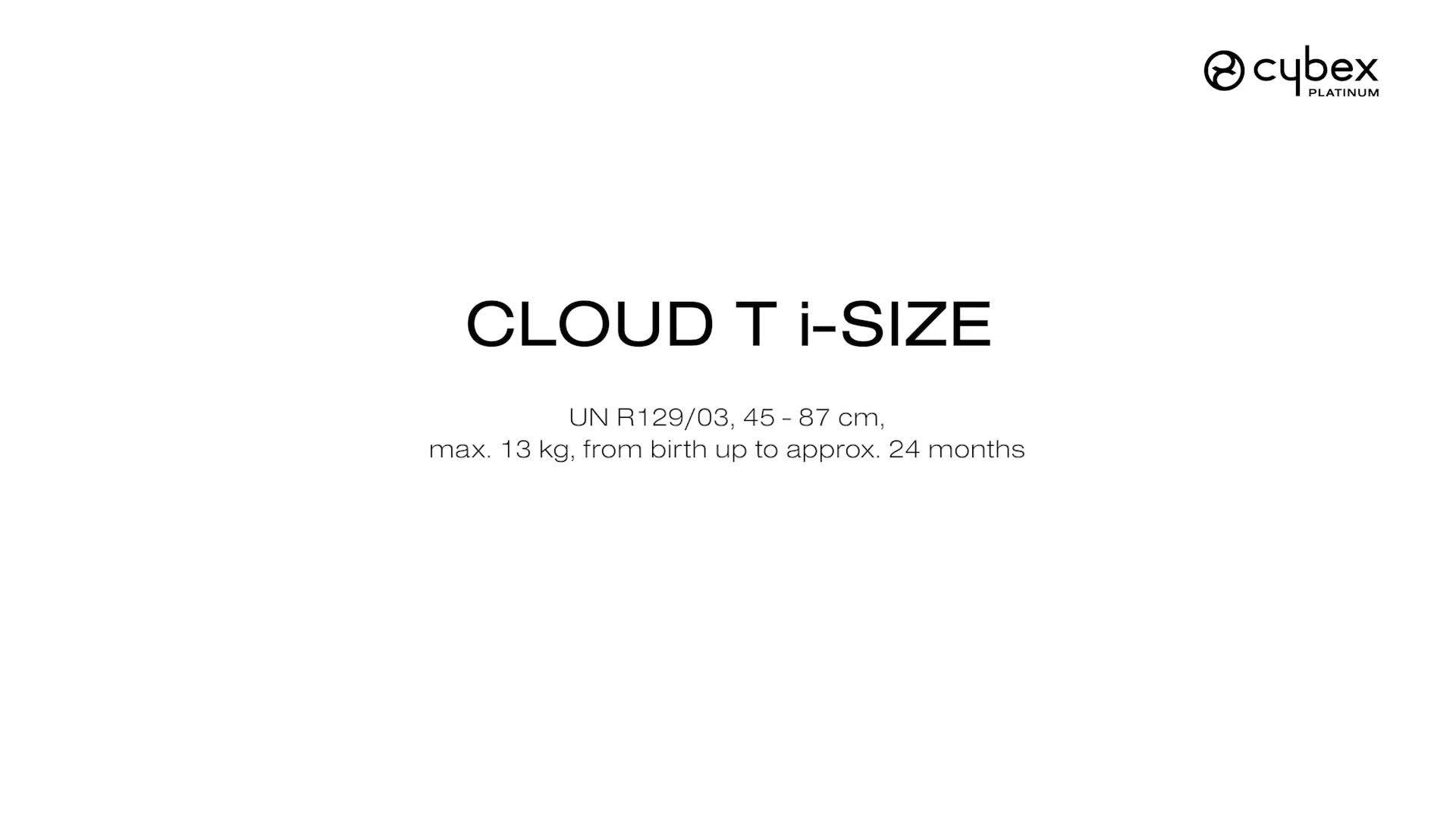 - Grows with the child - The Cloud T's height-adjustable Headrest provides 12 different positions, allowing for a personalised and secure fit for your growing child. With the integrated harness guide, adjustments can be made effortlessly and within seconds while ensuring that the safety features of the seat are properly positioned. The Cloud T i-Size grows with your child from birth to approximately 24 months old (45-87cm) and the harness automatically adjusts as you move the headrest or recline the seat.