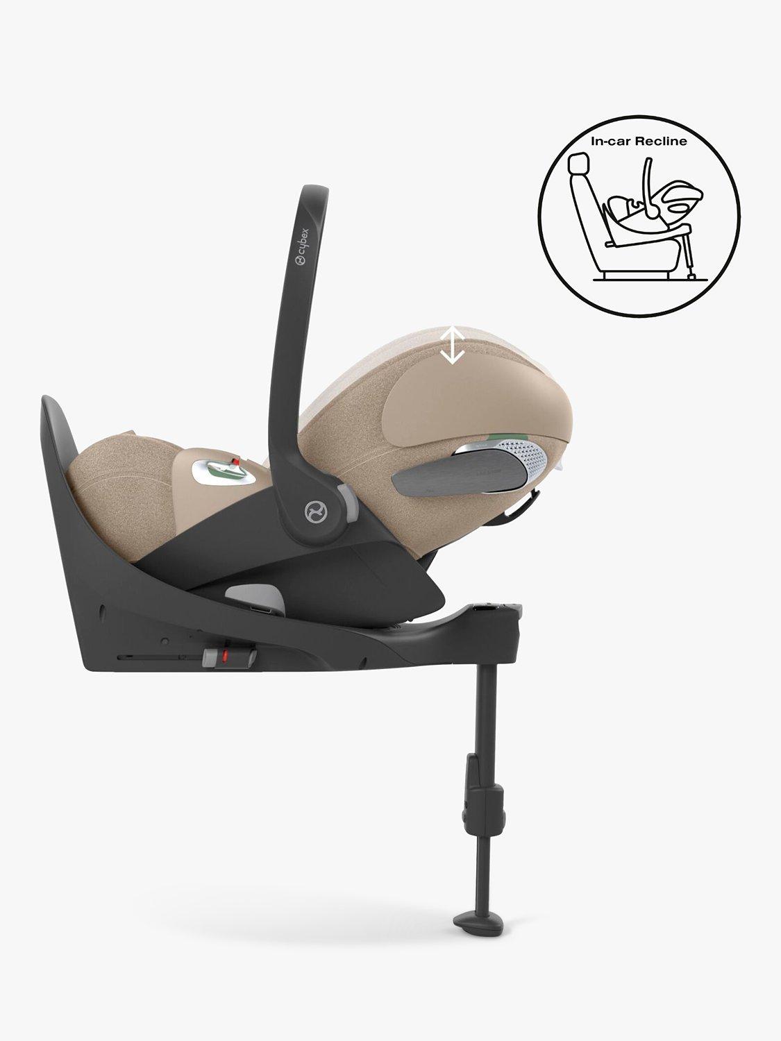 - In-car recline - With the Cloud series Cybex developed an ergonomic lie-flat position for outside of the car. Building on this innovation the newest Cloud T i-Size can also be placed in a reclined position while in the car. This feature allows greater comfort for the child without compromising on safety while on the road.