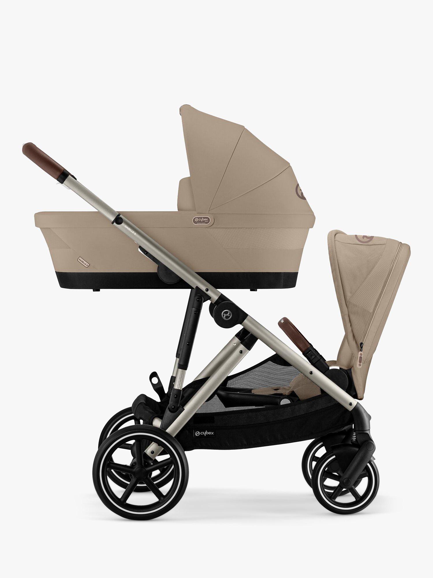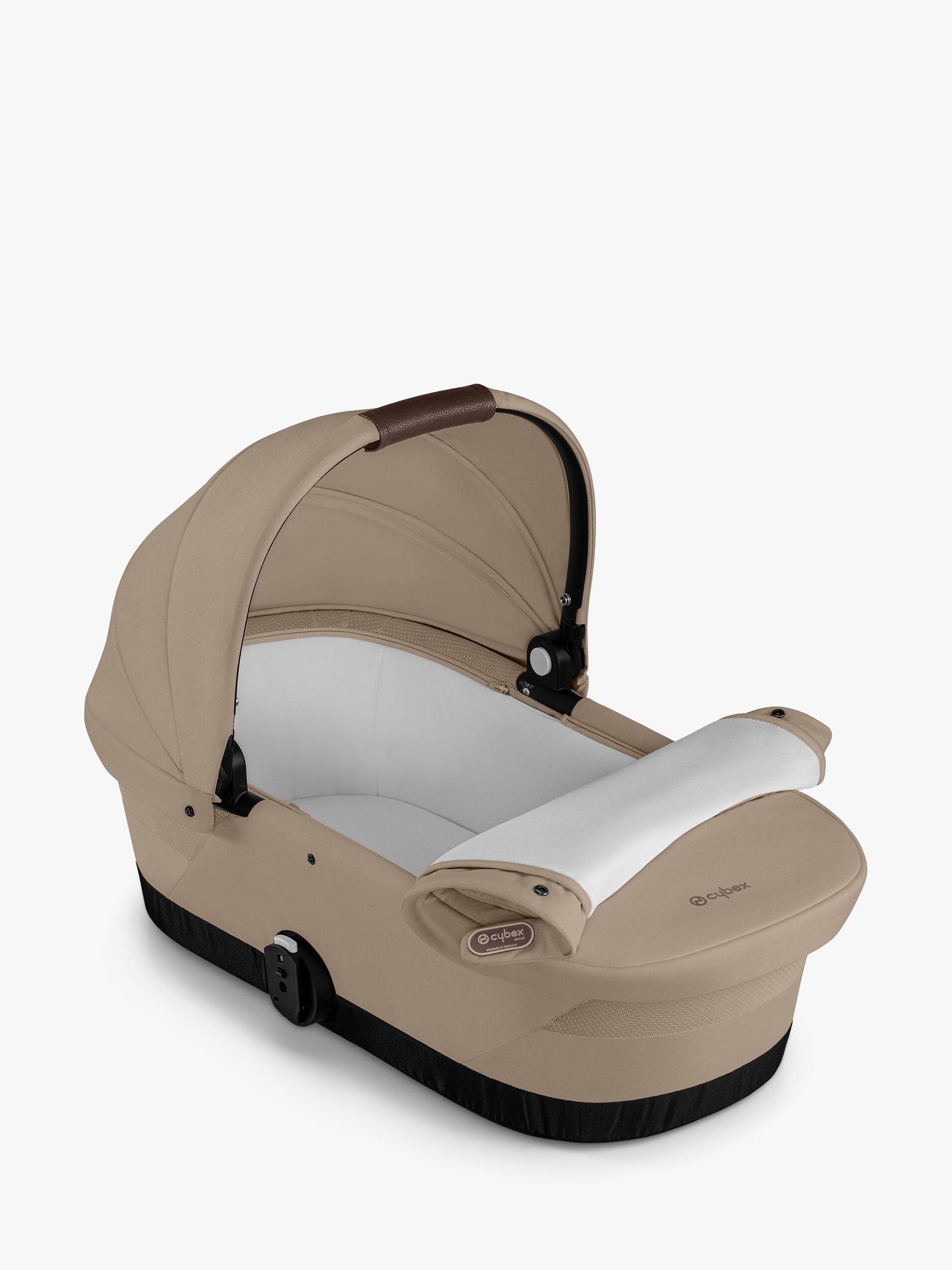 The Gazelle S Carrycot is ideal for babies from birth until they are approximately six months old. Approved for overnight sleeping and with a cosy interior lining and soft foam mattress, it offers maximum comfort and support. Simply click the carrycot to the Cybex Gazelle S pushchair frame (sold separately) and you’re ready to go. Removing the carrycot from the frame is just as easy using the memory buttons and integrated carrying handle. The Gazelle S Cot has a panorama sky view window for improved air circulation, UPF50+ XXL sun canopy and a free rain cover included, all helping to keep your baby protected from day one.