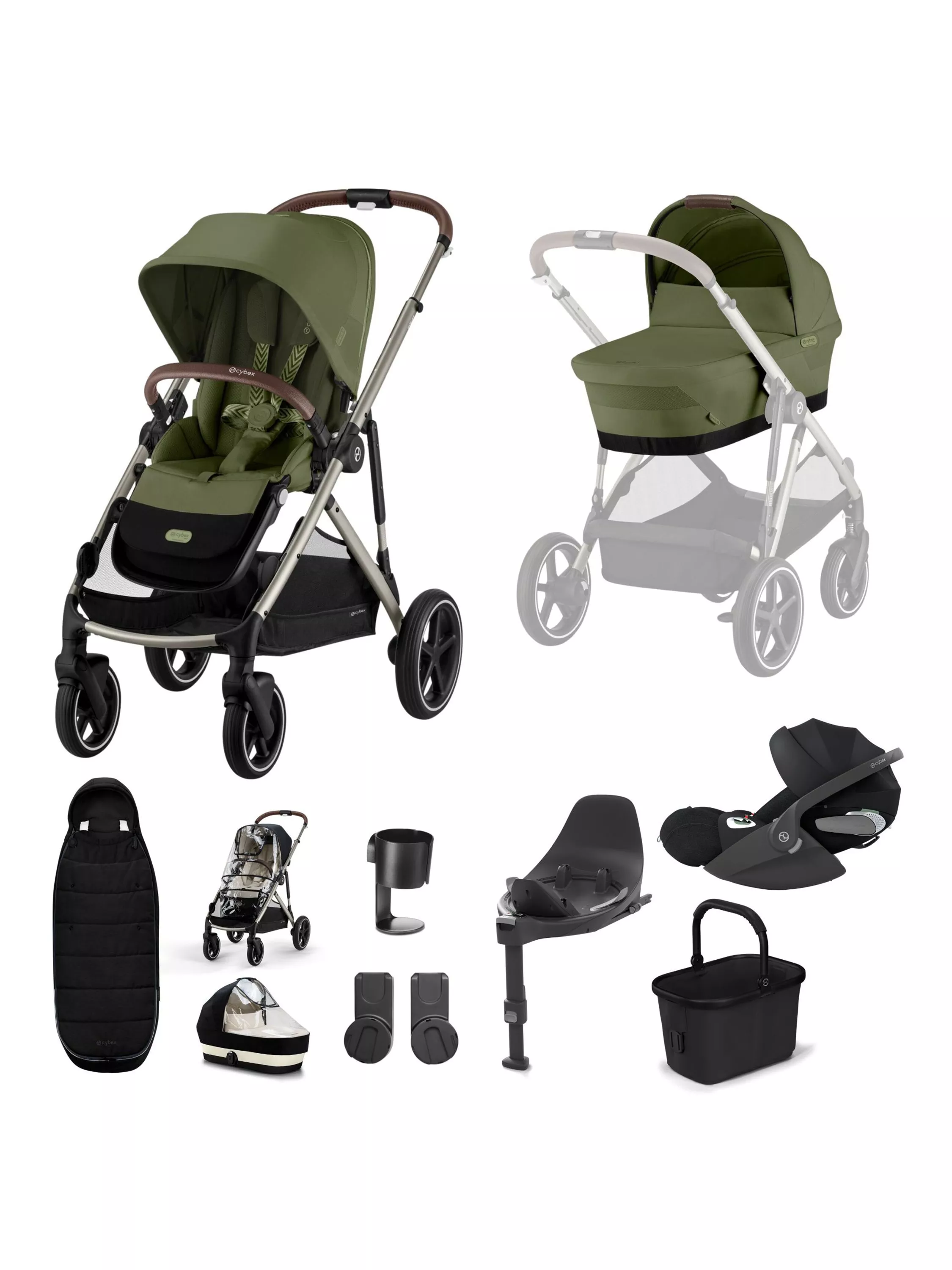 CybexGazelle S Pushchair, Carrycot & Accessories with Cloud T Car Seat & Base T Bundle, Moss Green